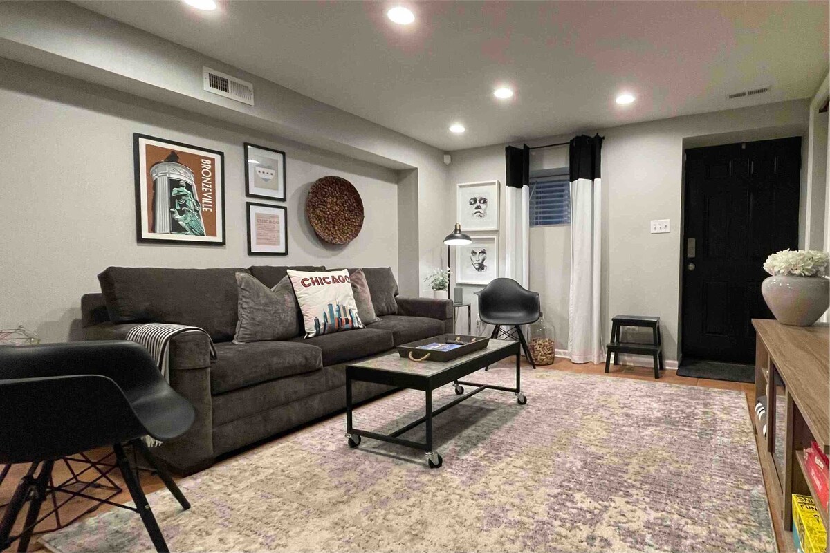 Főzz rozsdamentes acélból készült konyhában gránit munkalapokkal, csillogó evőeszközökkel és jól felszerelt hűtőszekrénnyel. A fekete és szürke ékezetek és a sötét erdők ellensúlyoznak egy elnémított palettát ebben a nyitott koncepciójú otthonban. Az átgondolt részletek közé tartoznak a 800 szálas ágynemű. Egy menedékhely, amelyet úgy terveztek, hogy a luxus és a föld elemei révén pihenjen. A buja fürdőszobai textíliák és fürdőköpenyek, a luxus testápolási és hajápolási termékek az elegáns dizájnnal párosítva olyan fürdőhelyet biztosítanak, amelyet biztosan élvezni fogsz. Teljes gránit és rozsdamentes acélból készült konyha borhűtővel, amely tele van a reggeli alapvető kellékekkel és a Bronzeville BNB alapelveivel, hogy megkönnyítse a napi kalandot. Pihenj vagy legyél társasági a nyílt térben, amely Amazon szórakoztatórendszerrel és wifivel van felszerelve, és ahol naprakész az időjárás, a sportok, a hírek, a legújabb filmek és igen...néha... a munka. Pihenj meg a három alvóhely egyikén, amelyek mindegyike 800-as szálsűrűségű, 100% -ban pamutból készült ágynemű. A Bronzeville BNB minden sarkon átgondolt dolgokat találhatsz. Élvezd! A teljes lakosztályhoz hozzáférhetsz, beleértve a nyitott alaprajzú nappalit/étkezőt/konyhát, a spa fürdőszobát, a gardróbbal ellátott hálószobát, a gardróbbal ellátott hálószobát, a mosógépet/szárítógépet, a felmosót/seprűt, a szemetes tálcát és a tűzoltó készüléket is tartalmazza. Elöl és a hátsó bejáratnál betonteraszok is találhatók. A hátsó udvar, a fő ingatlanfedélzet és a garázs korlátozott területek. A lakosztály a történelmi Bronzeville-Hyde Park negyedben található. Bérelj Divvy kerékpárt a közelben található 18 mérföldes tóparti rekreációs ösvény felfedezéséhez. Chicago főbb látnivalói egy rövid autóútra találhatók. A leghatékonyabb módja annak, hogy megkerüld a várost, ha AZ UBER háztól-házig szolgáltatást kínál Chicago legnépszerűbb látnivalóihoz. Igényelj INGYENES (legfeljebb 5 USD értékű) Uber-fuvarajándékot a házigazdától a következő linkre kattintva: https://www.uber.com/invite/zkyf4 A Divvy kerékpárkölcsönzés fantasztikus módja annak, hogy felfedezd Chicago 18 mérföldes tóparti ösvényét. A Divvy Explorer-hágó 24 órás kerékpárhozzáférést biztosít, és korlátlan, egyenként legfeljebb 3 órás, napi 15 dolláros utazásokat tesz lehetővé. Vedd fel és küldd vissza a kerékpárokat az 575+ Chicago és Evanston Divvy állomásokon. Töltsd le a Divvy alkalmazást az állomáshelyszínekről és a bérletvásárlásokról. Fontos a biztonságod. Legyél biztonságban, és figyelj oda a környezetedre. Minden hatalmas városban történhetnek a dolgok. Javasoljuk, hogy ne sétálj éjszaka, kerüld a tömegközlekedést a belvárostól távol, és használj fuvarmegosztási alkalmazásokat a valutaátváltás elkerülése érdekében.