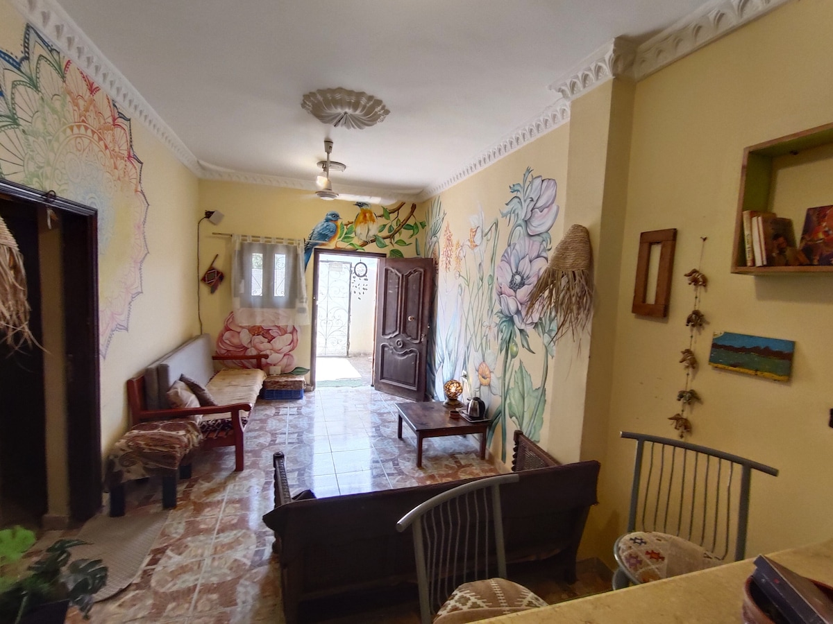Egy napsütötte, újonnan felújított, 2 hálószobás lakás közvetlenül Dahab központjában. A házat modern/bohém stílusban tervezték, saját kerttel. Ez a ház stratégiailag található, 60 másodperces sétára a strandtól és Dahab híres éttermeitől, búvárközpontjaitól. Az apartman saját bejárattal és tágas kerttel rendelkezik, amely Dahab hegyeinek és pálmáinak gyönyörű tájaira néz. Lépj ki kevesebb mint egy perc sétára a strandtól és Dahab híres éttermeitől.