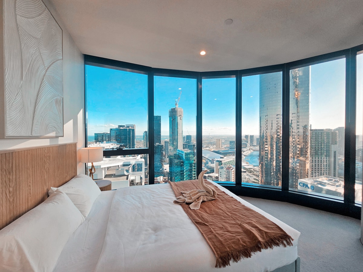 Stylishly designed and perfectly located, this stunning 2-bedroom apartment on the 35th floor offers sweeping views of Southbank, the Yarra River, the city, and Port Phillip Bay. Walk to the CBD, Southbank DFO, Crown Casino, and South Melbourne Market. Enjoy riverfront cafes, restaurants, a convenience store, and easy access to public transport right at your doorstep. Amenities include free Wi-Fi, a pool, gym, spa and sauna.