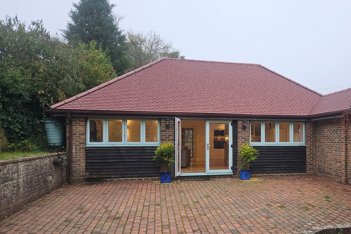 Egy A-keretes víkendház egy privát és félreeső, 7 hektáros területen, a South Downs Nemzeti Park lábánál található. Az építészetileg kialakított, otthonos víkendház két hálószobával rendelkezik, amelyek között egy félemelet is található, ahonnan kilátás nyílik a dimbes-dombos Sussex vidékre. Tökéletes azoknak a pároknak, akik egyedi élményre vágynak, barátoknak, akik újra csatlakozni szeretnének, vagy olyan kis családok számára, akik minőségi időt keresnek a természet közepette. Világszínvonalú szőlőültetvények vannak a közelben, vagy ha szereted a város nyüzsgését, Brighton 30 perces autóútra fekszik.