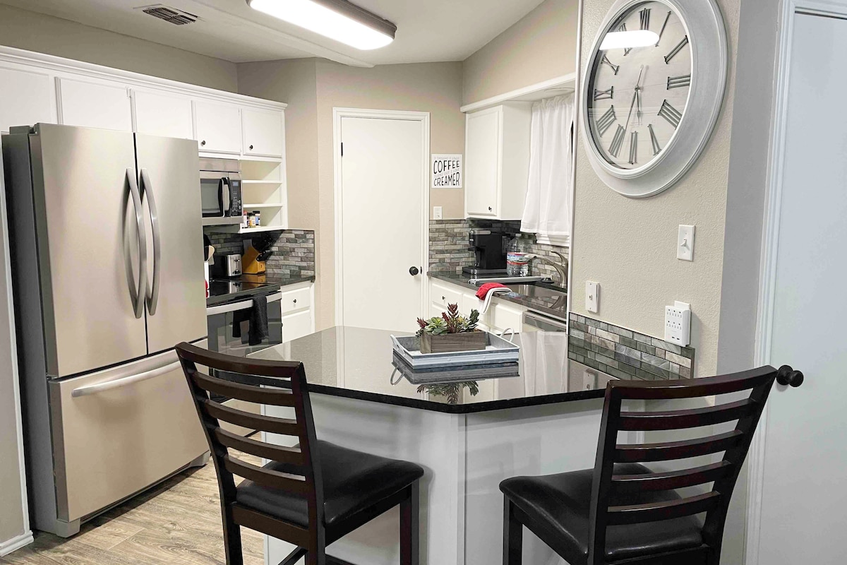 Éjszaka, aludj jól. 2Br/2Ba vadonatúj építésű otthon saját bejárattal. Ingyenes internet és kávé vár rád egy olyan környéken, amely csak egy rövid autóútra van az éttermektől, a texasi techektől és a helyi kórházaktól. Franciaágyak mindkét hálószobában. Tökéletes hely a kikapcsolódásra a családoddal és a barátaiddal.