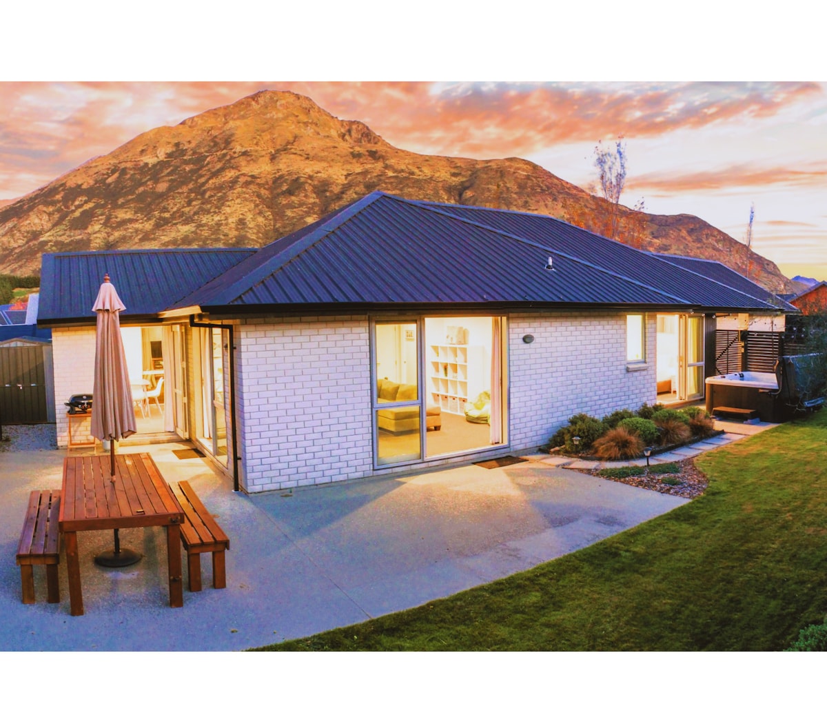 - Lenyűgöző kilátás a hegyekre – Privát környezet. – Teljesen önálló - Tágas, nyitott elrendezésű nappali és konyha - Vadon élő madarak csiripelése. – Fatüzelésű pezsgőfürdő exkluzív használata – további 85 dollár – Szabadtéri fürdő (vagy merülőmedence) a csillogó csillagok alatt -5 perc autóútra az 5 Mile bevásárlóközponttól – 20 perc autóval Queenstownig -150 méterre a Twin Rivers ösvénytől – 4 kerékpár és sisak - A figyelemre méltó és a Coronet Peak sípályák - 30 percre. – Queenstown lenyűgöző helyszíneinek és látnivalóinak közelében - Utcai parkolás