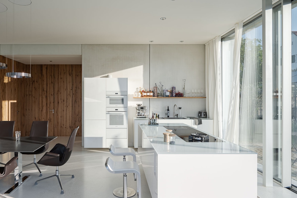 A whiteloft az egyik legnépszerűbb helyszínünk, amelyet az Airb&b szálláshelyén kínálunk október 22 óta. A tetőtér körülbelül 130 négyzetméter , mennyezeti magasság 5,5 méter A terület 50% -a kizárólag wellness- és életkörülményekre lett tervezve. Fürdőkád,nappali ágy, 2 kihúzható csiga zuhanyzó és Az igazi fából készült kandallók nem hagy kívánnivalót maga után. Nyáron egy 5x4 méteres kapu nyitható, ami az alsó tetőtéri területet átalakíthatóvá teszi. A nagy teakonyha és a tömb alkalmas rendezvények lebonyolítására Borhűtő 4xGas és kerámialapos tűzhely biztosított