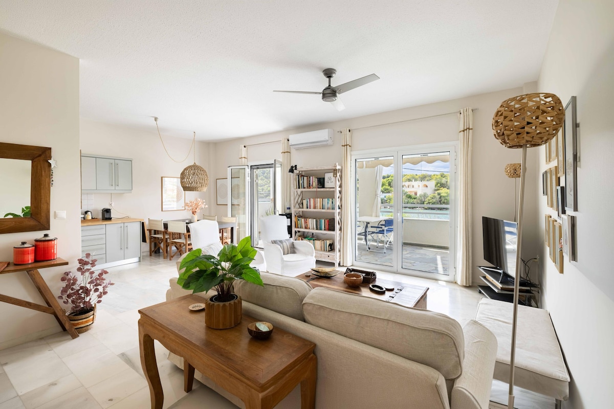 The most beautiful apartment in the OLD PORT, in the most CENTRAL spot overlooking the sea in a completely quiet neighborhood & cool breeze! FULLY RENOVATED with wonderful MATERIALS & amazing EQUIPMENT, the only sure thing is that you will love it! within walking distance from all major sights of SPETSES town (1 mile away from the town' s centre). Easy access to the island's road system. You can easily drive to all of the island's sights and beaches.