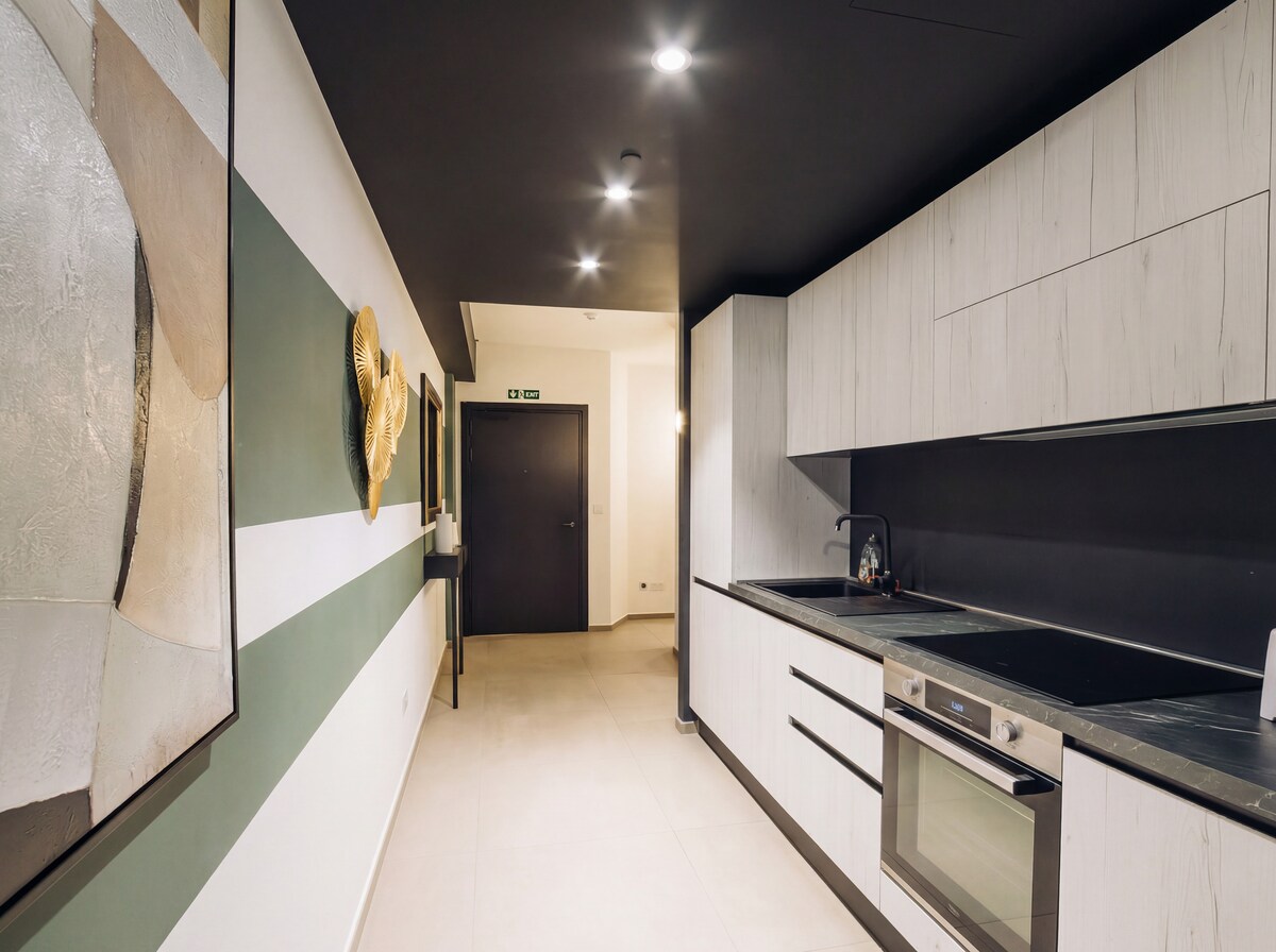 Modern, két hálószobás lakás exkluzív tetőtéri medencével, a St. Julian's-i Mercury Suites 5. emeletén. Saját erkéllyel és világos, nyitott terű nappalival. A lakásban két kényelmes ágy, egy kanapéágy, egy zuhanyzóval felszerelt fürdőszoba, egy teljesen felszerelt konyha és egy stílusos, okostévével felszerelt társalgó található. A prémium kényelmi szolgáltatások közé tartoznak a medencék, az edzőterem, a gyógyfürdő és a nonstop biztonsági szolgálat. Mindenhova közel van innen: St. George's Bay, a legjobb éttermek, a tengerparti klubok és az élénk éjszakai élet.