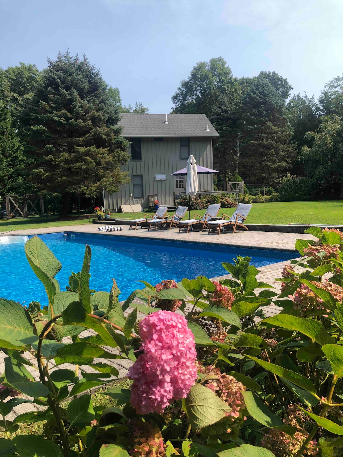 Luxury Hamptons Poolside Paradise kültéri szaunával