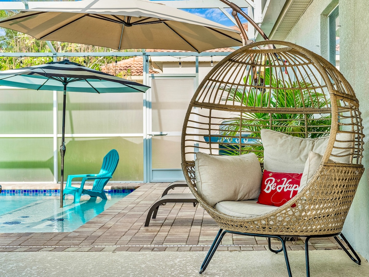 Sit back and relax in this stylish home with all the amenities you need for a fun family getaway. This home has a spacious layout with 3 bedrooms and 2 baths. We have thought of everything so you don't have to-toiletries,washer/dryer, and wifi. Enjoy your morning coffee in the screened in pool area with a beautiful sunrise and lake view or sip a glass of wine while floating in the pool. Just minutes to Theme Parks and major highways, this is the dream home you have been waiting for!