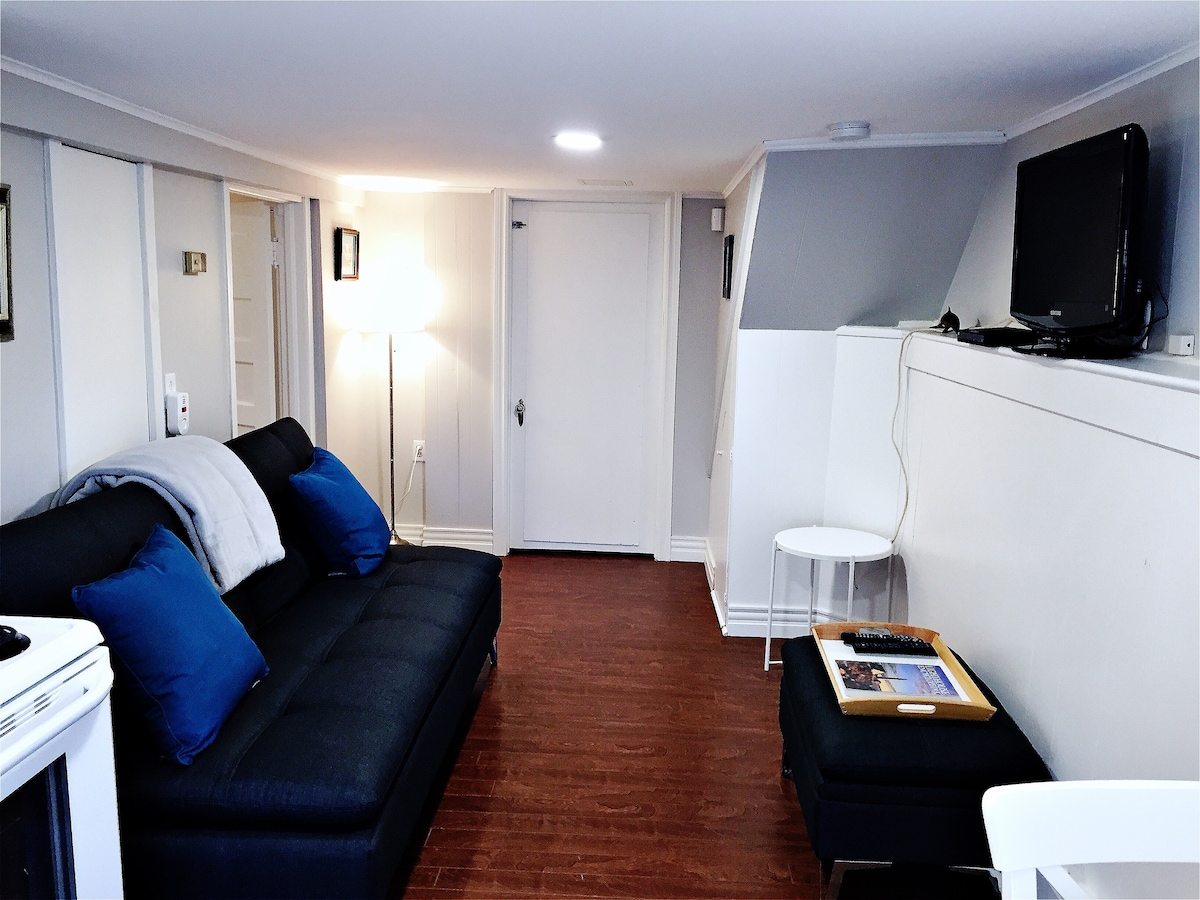 Gyönyörű,világos,modern,teljesen légkondicionált, két hálószobás alagsori lakás St. John 's csendes Kenmount teraszán. A szolgáltatások közé tartozik a kulcs nélküli ajtózár, a grillezővel, asztallal és székekkel felszerelt terasz, a teljesen felszerelt konyha, az ágynemű, a törölközők, a hajszárító, a vasaló, a műholdas TV, a wifi, a mosógép és a szárítógép, az ingyenes privát parkolás. 5-10 percen belül elérhető a kényelmi szolgáltatások, például a Walmart, a Costco, az Avalon bevásárlóközpont, az egészségtudományi kórház, a Sobeys élelmiszerbolt, a pénzügyi intézmények és számos étterem.