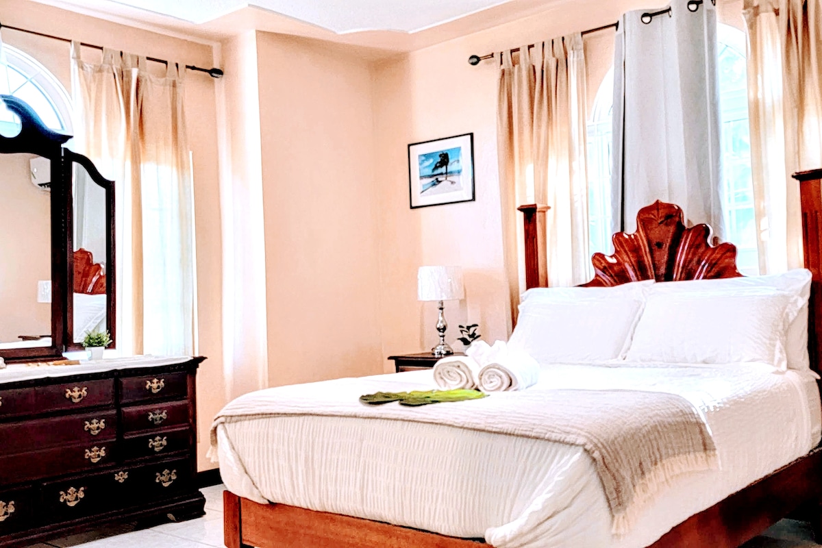 Felejtsd el az aggodalmaidat ezen a tágas, zöld és nyugodt helyen. Öt (5) percre a strandtól a teljes kikapcsolódás érdekében. Ragadd meg a lédús jamaicai húspogácsáidat a városban, majd ne felejtsd el elfelejteni a jamaicai csirkédet és a jamaicai sertéshúst közvetlenül a hátsó udvarban. Hintázz kényelmesen, és élvezd a hűsítő szellőt a telefonodon, vagy olvass el egy könyvet a jamaicai gyümölcsfák alatt. 15 percre az Ian Flemmings Int'l repülőtértől és 35 percre a híres Dunns River Falls-tól.