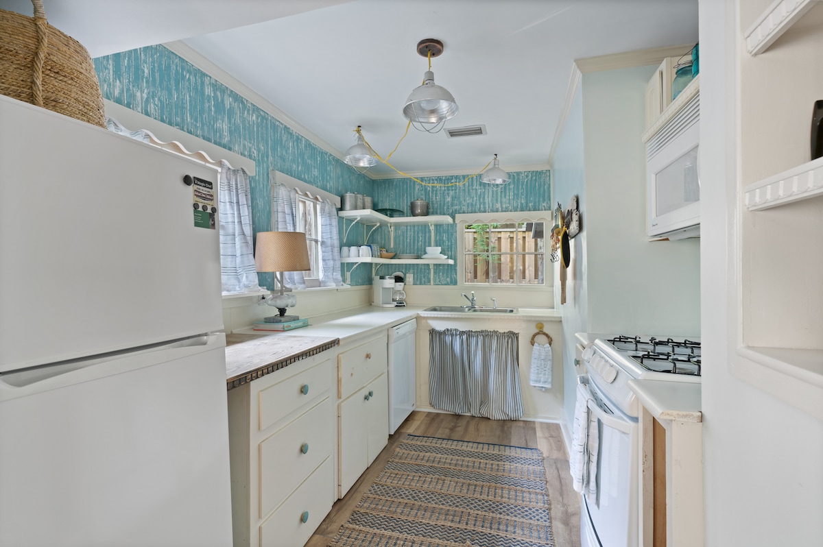 Aranyos és érdekes vendégház St.Simons mólójának/falusi területének szívében, amely helyreállította vintage örökségét. Új légkondicionáló és 65hüvelykes okostévé. Saját kocsifelhajtóval rendelkezik, de nem lesz szükséged autóra - ez a kisház olyan hihetetlen helyen található, hogy könnyedén sétálhatsz mindenfelé! Kis tengerparti kisházunk teljesen el van zárva egy privát kerítéssel, hogy a háziállatod szabadon futhasson. Kültéri étkezővel, grillezővel és szabadtéri zuhanyzóval ellátott verandával is rendelkezik.