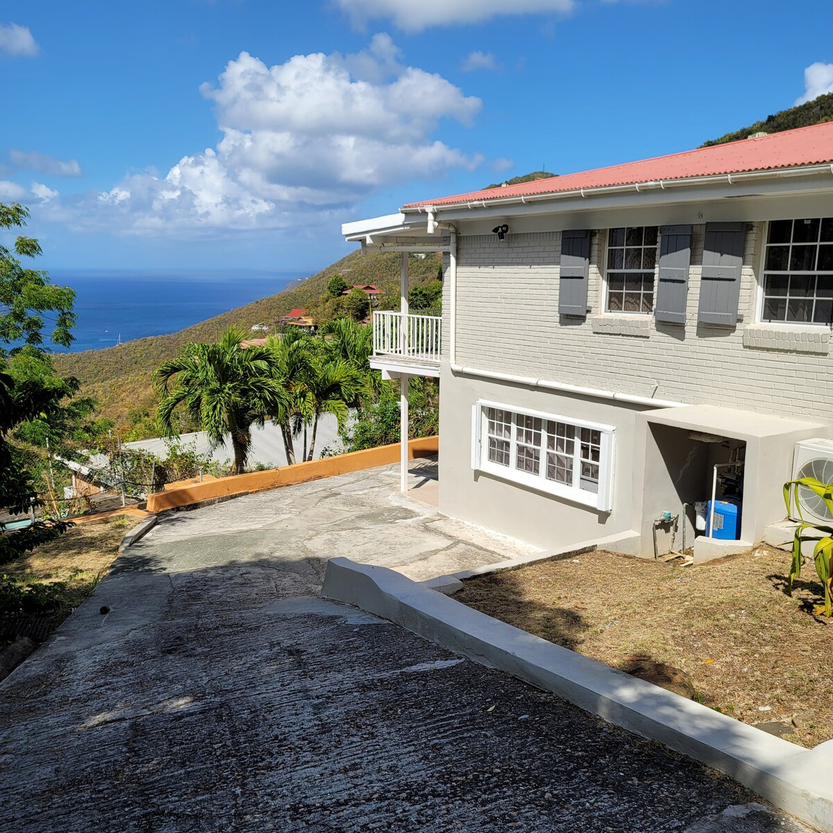 - You’ll have a private newly renovated apartment (middle level) that sits within the jungle high up on the mountain side. - Views of Charlotte-Amalie Harbor, St Croix, and a glimpse of St John. - 5 minute drive to Hull Bay and the best fish tacos on the island. Magens Bay is just 10 minutes away. - Starlink internet so you’ll never lose internet! - House complex is powered by solar panels and back up batteries!