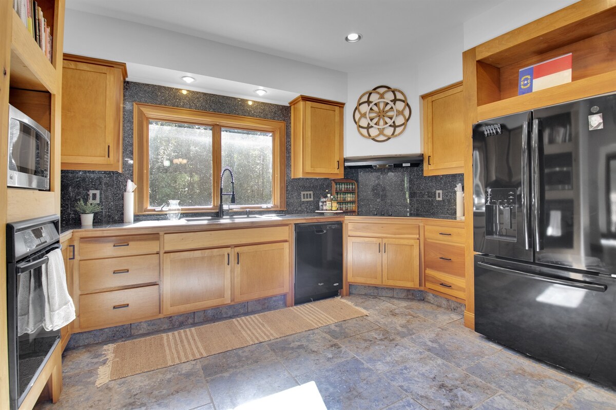 Relax at this peaceful lakefront home featuring a screenporch overlooking a wide expanse of lake — perfect for morning coffee and sunset evenings. 3 bedrooms total; 2 on main with full kitchen & a separate basement suite with its own bath, kitchenette & lounge area. Kayaks available on site. Secure your boat using mooring whips on dock. Ideal getaway for folks needing a couple days of classic lake life. Security cameras: 1 on drive, 1 on dock. 2 pet max, $125 per pet, no cats. 2 night minimum.