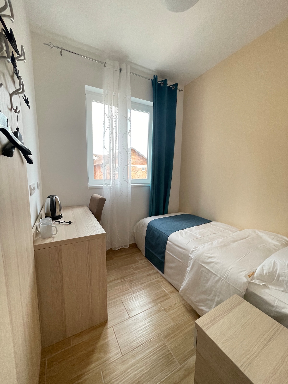 Kínálunk 4 szoba ( 2 kétágyas és 2 háromágyas ) .Kis szálloda. Az egész épület 2 szintes, földszinti és első emeleti. Ezek privát szobák, mint a szállodában, és minden szobához saját fürdőszoba. Minden szoba különálló és nincs összeköttetés. Szobáink 4 csillagosak. Nincs konyha és mosókonyha. 2 szoba a földszinten és 2 szoba az emeleten található. A szálláshely kapacitásunkat szobánként és nem személyenként értékesítjük, ezért fenntartjuk a jogot arra, hogy az embereket kényelmesen helyezzük el, kivéve, ha más megállapodásra jutunk, vagy külön kérésre. Minden szobához saját fürdőszoba zuhanyzóval,kábel TV-vel, ingyenes WiFi és légkondicionáló .Belső jött létre, hogy a vendégek élvezhetik a maximális kényelmet.Minden szobában van egy catler,mini hűtőszekrény és minden fürdőszobában van egy hajszárító,törölköző és személyes higiéniai készlet.