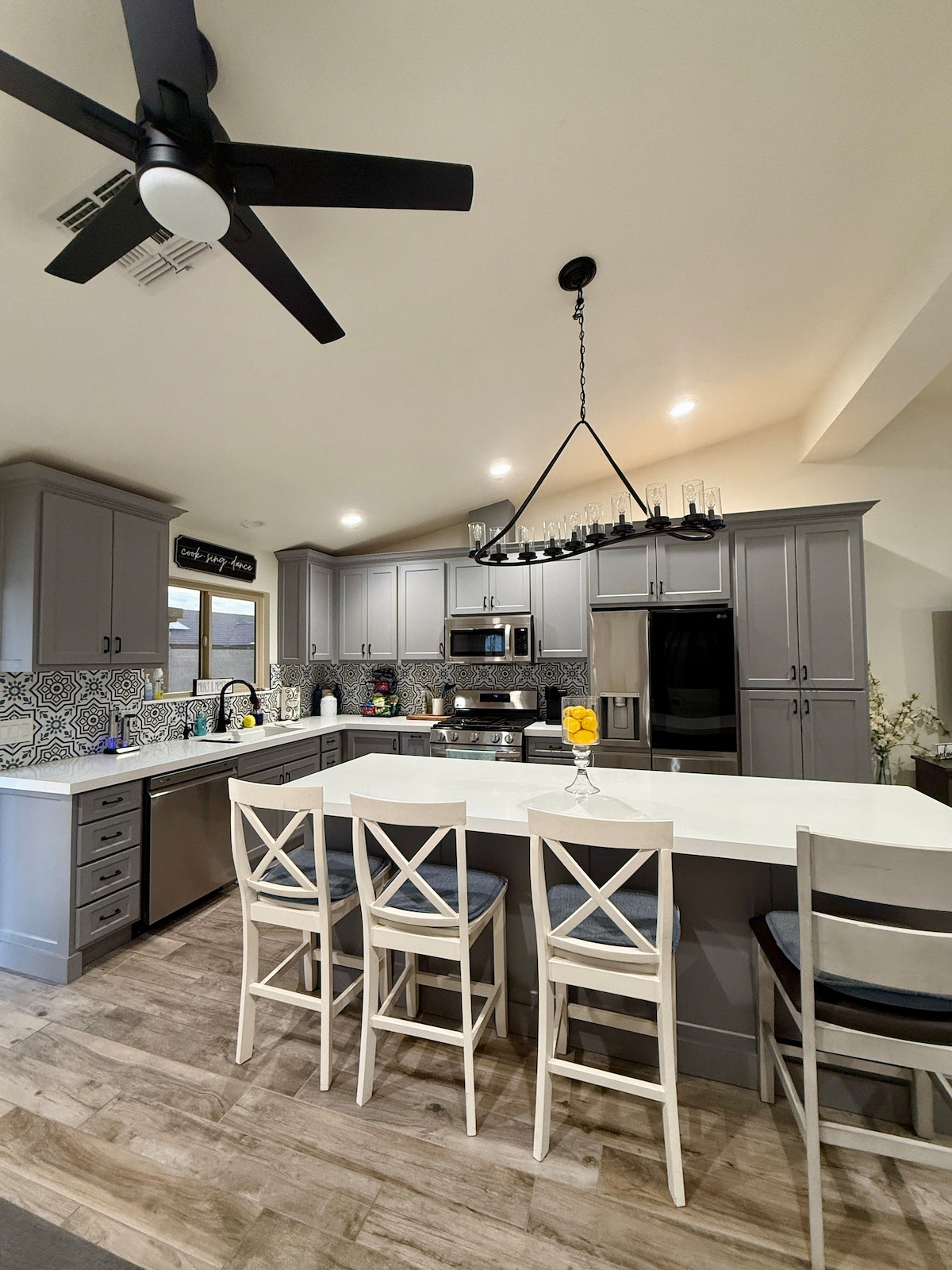 Family friendly Entertaining Home; Large covered patio with plenty of seating, fire table, Treager grill, Overlooking 10ft private heated pool Oct-May (included). Fully stocked chefs kitchen- double ovens, gas cooktop. Comfy beds, smart TVs in all bedrooms. Baby/kid friendly items. A perfect location for your Arizona getaway. Only 0.8 miles from the State Farm Stadium, Desert Diamond, Westgate with tons of local restaurants and adventures avoid traffic and walk to your event! Weekly discounts.