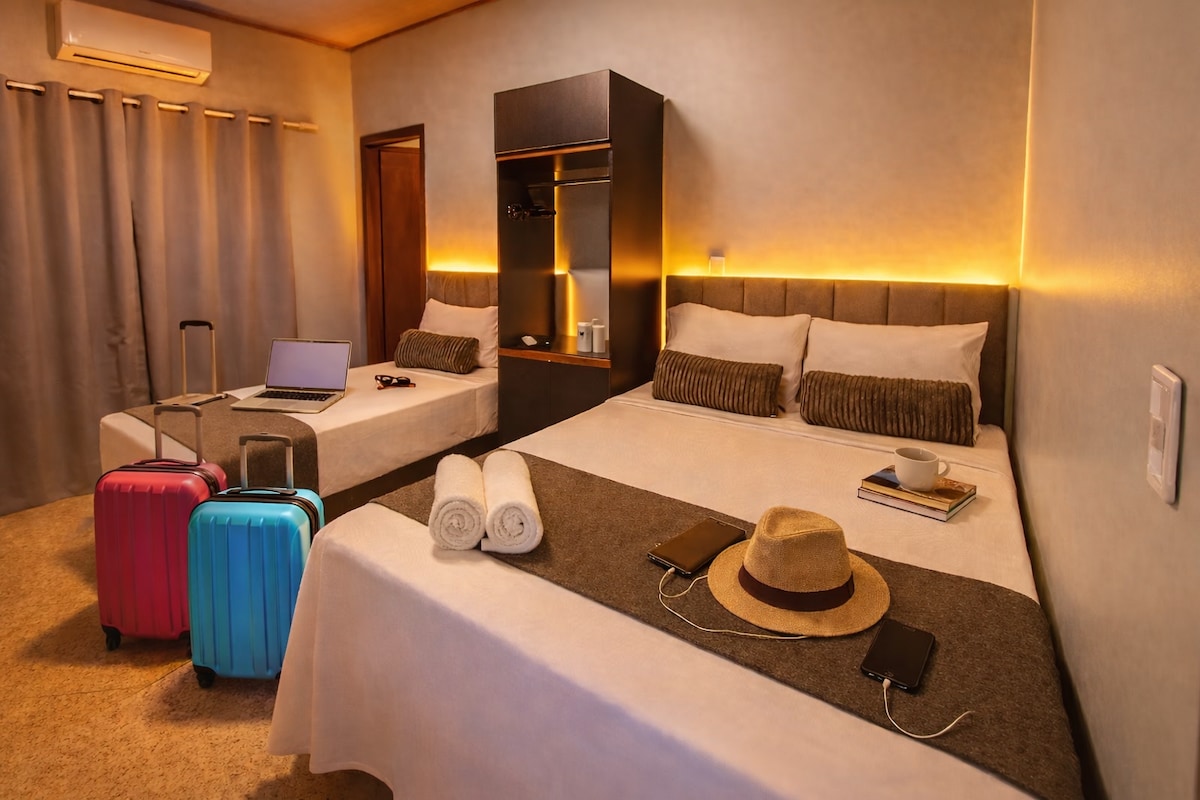 Modern lakás az Intercity Manausban, tökéletes szabadidős vagy üzleti célra. Akár 3 fő kényelmesen elfér, Wi-Fi, minibár és ágynemű. Panorámás kilátás a városra, és hozzáférés a medencéhez, az edzőteremhez és az étteremhez. Stratégiai elhelyezkedés: közel a Manauara Shoppinghoz, az ipari negyedhez és a belvároshoz. 5 naponta ingyenes takarítást kínálunk. A szállás élményét éljük át, mint egy lakos, de szállodai struktúrában!