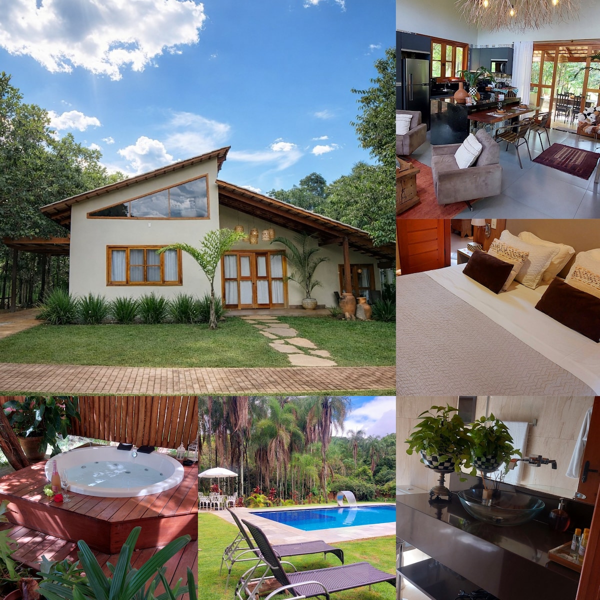 Desfrute do cenário encantador deste local romântico na natureza. Construída na altura da copa das árvores você estará literalmente no céu. A casa é novíssima, cheia de inspiração arquitetônica e iluminação romântica. Todos os detalhes da casa são para oferecer uma experiência única colocando o conforto e a satisfação dos sentidos em primeiro lugar. A vista é de tirar o fôlego, a jacuzzi esta embaixo de um céu de estrelas extraordinário!!! Ar-condicionado. A 1km do centro. Insta @ casaceuchapada