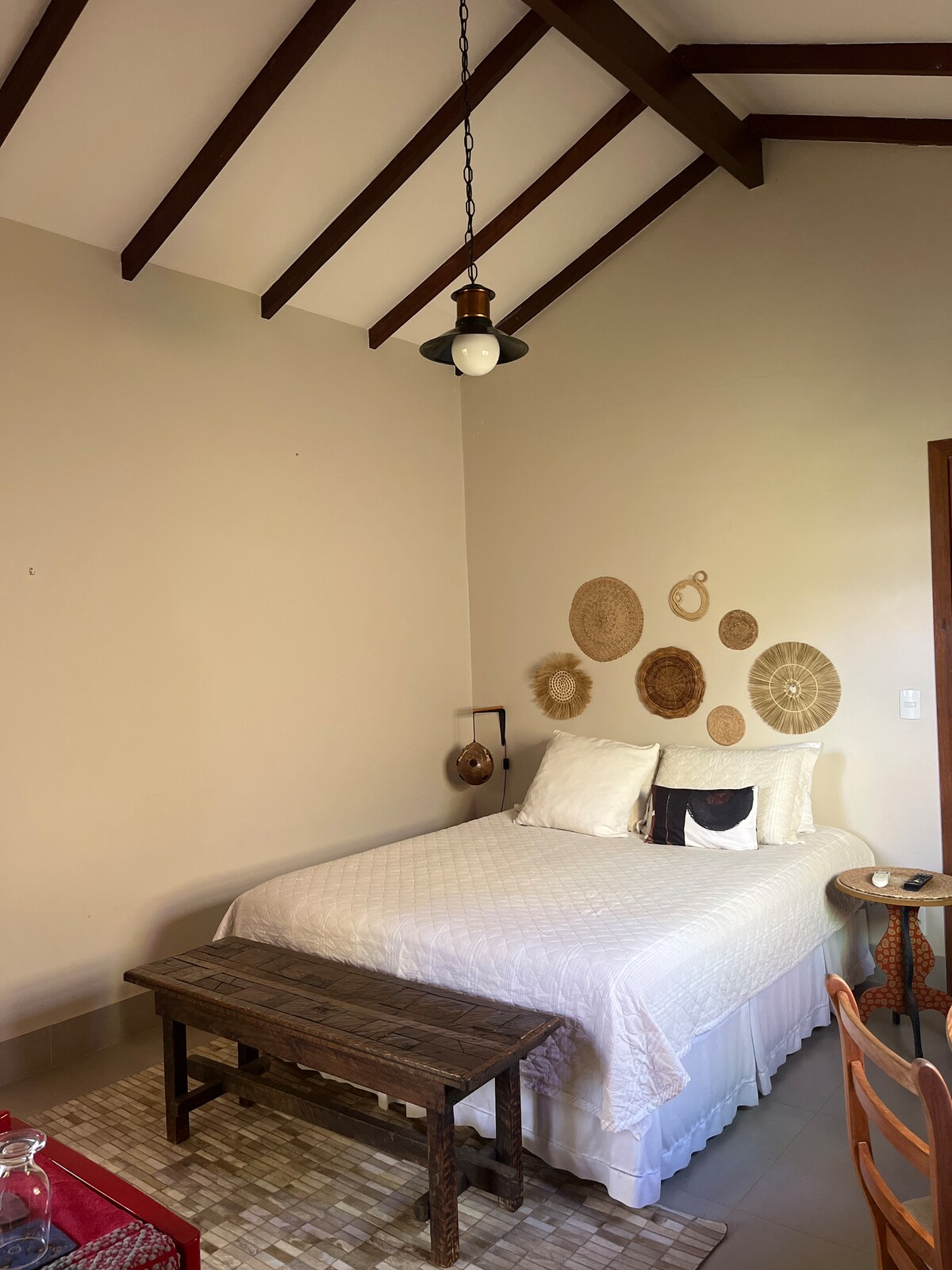 O Bangalô Inaê é um mergulho em conforto e alma brasileira. Com 80 m² de pura inspiração, une arquitetura autoral com uma vista que se abre como um quadro vivo. Lençóis de 1000 fios para o máximo conforto. Cozinha completa e banheira de imersão, mas a verdadeira celebração vem com nossa piscina natural com agua ozonizada, um lindo deck, sauna e um pequeno café da manha cortesia preparado por nossa Chef. Ideal para quem busca uma experiência de imersão no cerrado nativo com conforto.