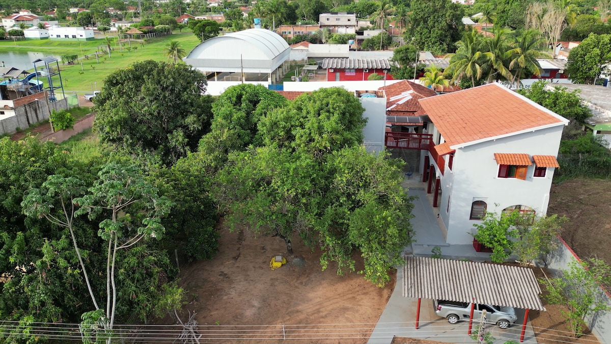 Elbűvölő stílusú, egyszerű és kényelmes otthon. Pihenj az egész családdal ebben a csendes szálláshelyen. Pirenópolis központjának közelében, ideális a családi pihenéshez. Minden eszközzel felszerelt konyha, hordozható grillező. A nappaliban van tévé, WI-Fi. Egy hálószoba lakosztállyal, 1 hálószoba és egy előszoba az emeleten, amely kollégiumként is használható. Közel a vízesésekhez, szupermarketekhez, gyógyszertárakhoz, éttermekhez és a Rodas do Tempo Múzeumhoz.