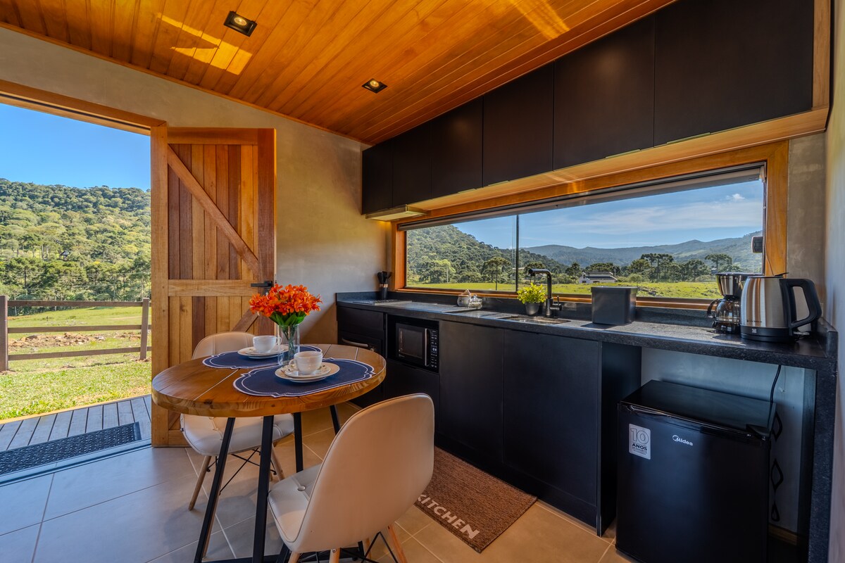 The hut @ oranchodacolina has: Teljesen felszerelt konyha, mikrohullámú sütő, elektromos sütő, turmixgép, kenyérpirító és légsütő. Olyan alapvető kellékeket kínálunk, mint a só, a cukor és az olívaolaj. A queen méretű ágy rendkívül kényelmes, az ágynemű pedig első osztályú. Meleg és hideg légkondicionálás, amely az év bármely időszakában biztosítja a termikus kényelmet. Fürdőkád fürdősóval. A fürdőszobában pedig a zuhanyzó és a gázzal fűtött csapok gyönyörű kilátást nyújtanak a természetre.
