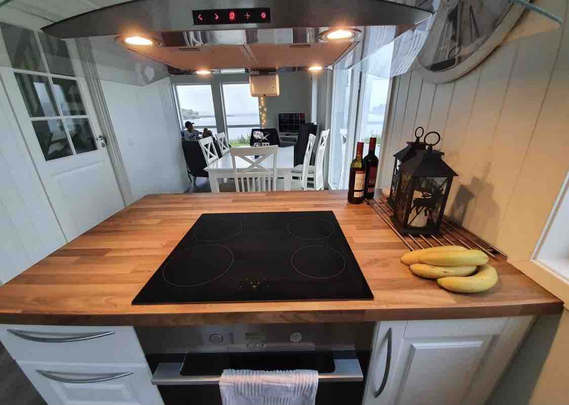 Nyoppusset hoveddel i kårhus som ligger skjermet til på gården, med en herlig utsikt over Verdal og Trondheimsfjorden. Det er perfekt for to, og med de to gjestesengene er det plass til å ha med flere. Det er hester på gården som kan sees fra huset. Trivsel her med hele familien, ingen trafikk forbi huset. Ønsker dere overnatting for fler enn fire, er det mulig å leie en hybel i tillegg. Muligheter for å leie stallplass til hest ved behov. Nærhet til E6 (3,6km), Verdalsøra (3,9km) og Stiklestad