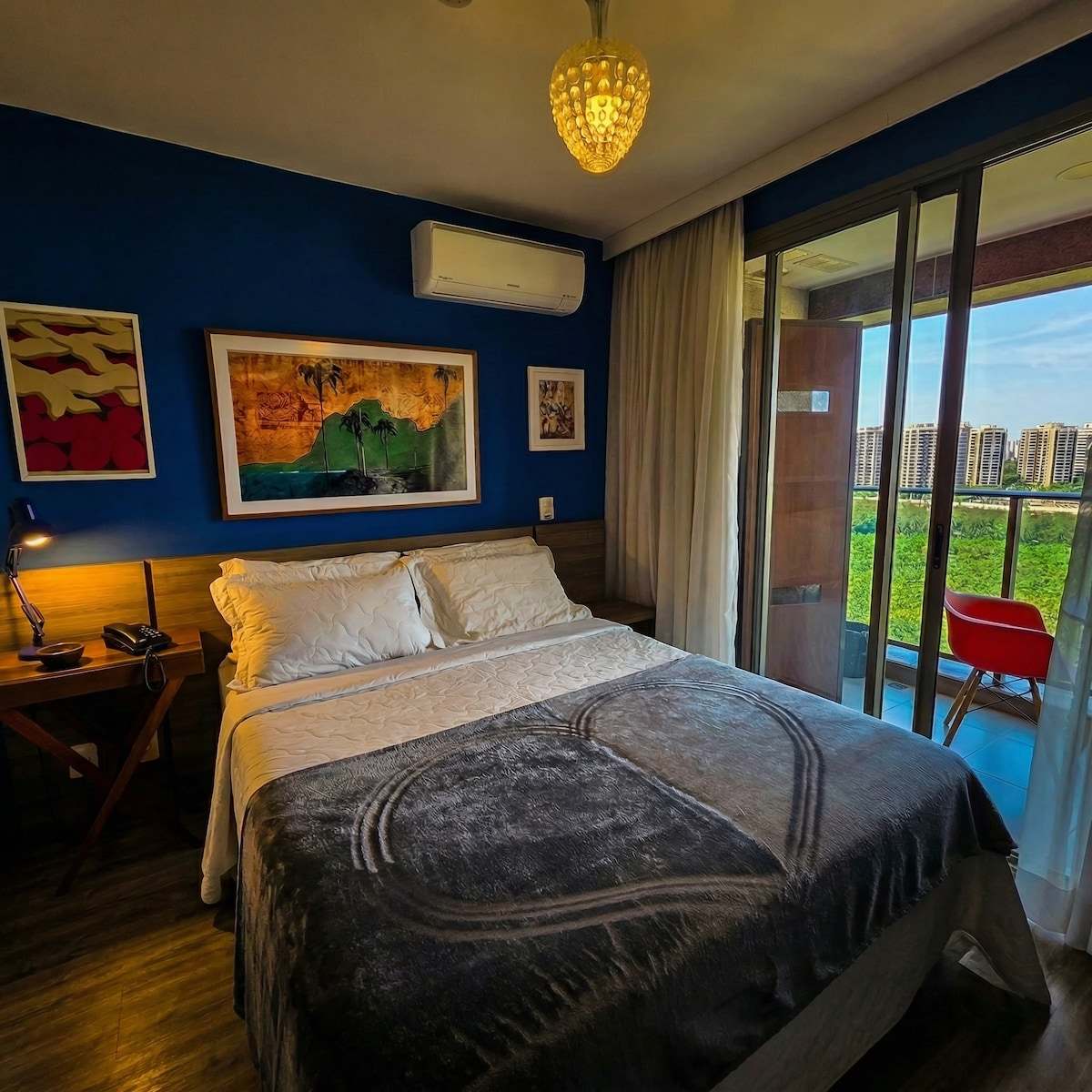 Élvezd a felejthetetlen kikapcsolódást Barra da Tijuca tengerpartján, ahol a luxus és a nyugalom találkozik. Pihenj a fűtött medencében gyönyörű kilátással a tengerre, egy szuper luxus, 63 m²-es, 1 hálószobás apartmanban, amely teljesen fel van szerelve a kényelmed érdekében. Napi takarítás, 24 órás biztonsági szolgálat, privát parkoló, fitnesz, szauna, jakuzzi és medence – ez az ideális hely a kikapcsolódásra. Családdal vagy barátokkal utazol? Nézd meg vadonatúj, luxusminőségű, két hálószobás lakosztályomat is a profilomon keresztül.