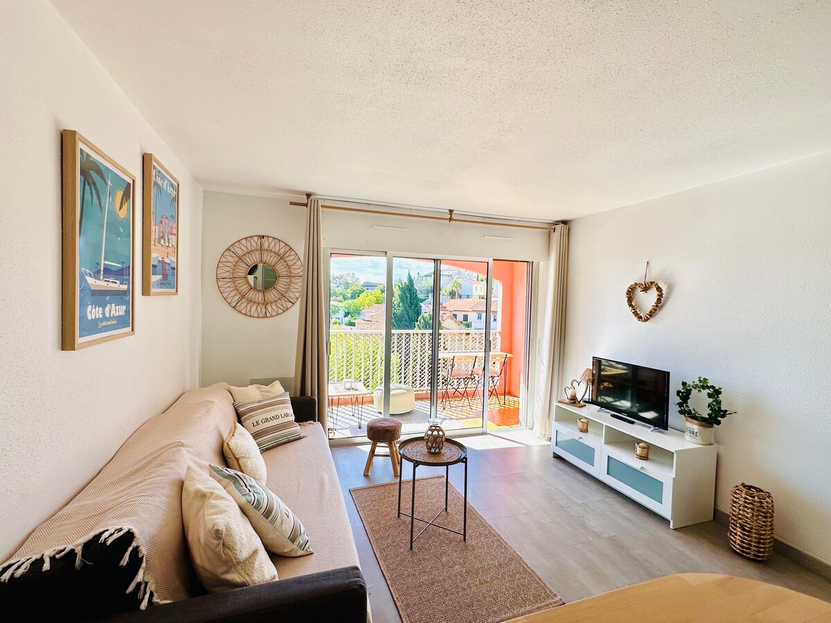Üdvözöllek Sainte-Maxime-ban! Ez a teljesen felújított, 40 m²-es, légkondicionált apartman napfényes terasszal rendelkezik a pihentető pillanatokhoz. Csak 10 perc sétára a strandtól, a kikötőtől és a városközponttól. Ideális pároknak, barátoknak vagy egy kis családnak. Teljesen felszerelt konyha, Wi-Fi, TV, mosógép, ágynemű. Csendes környék ingyenes parkolással a közelben. Tedd le a táskáidat, és élvezd a Francia Riviéra báját!