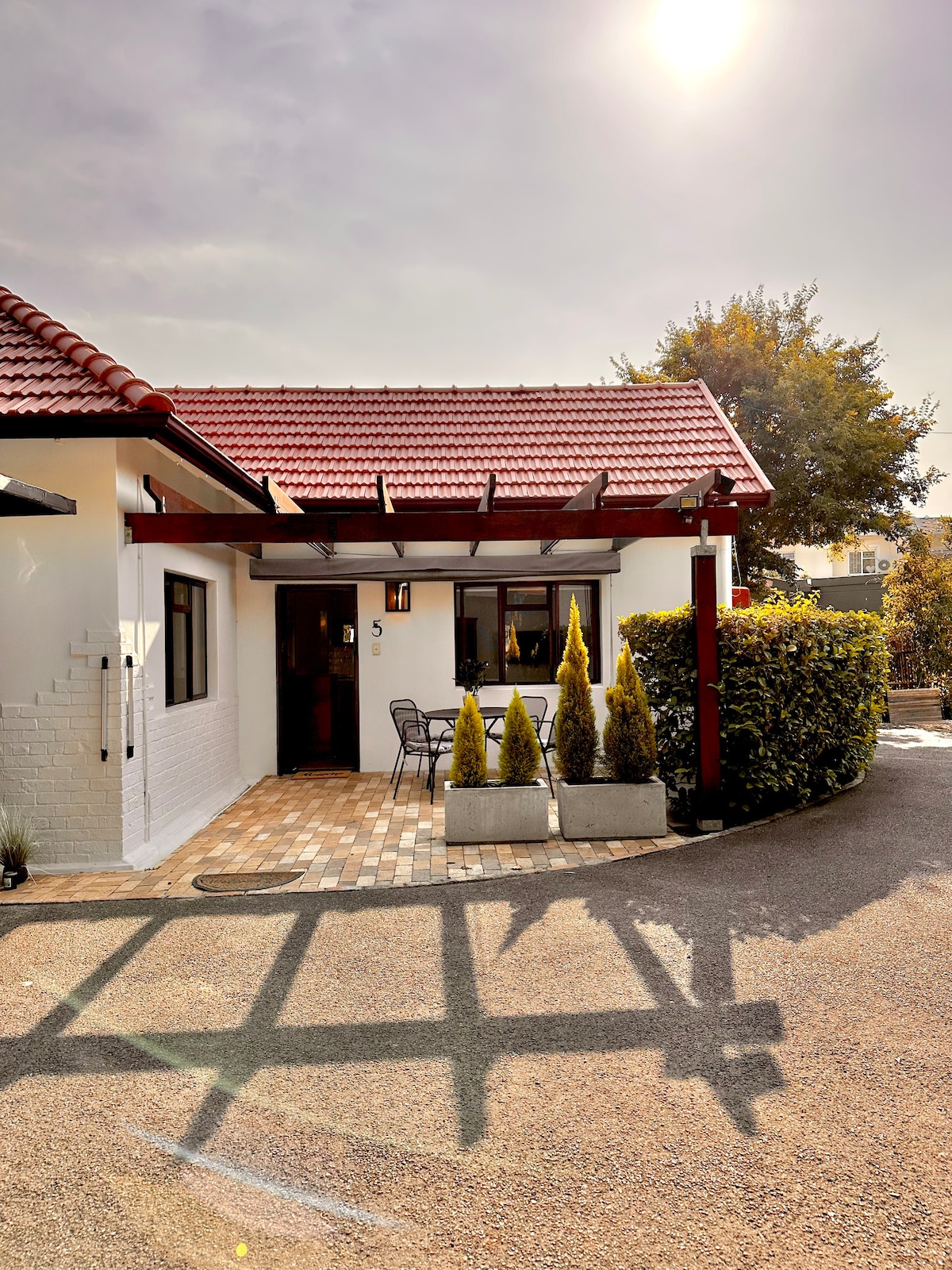A gyönyörű Stellenbosch városában található kerti ház rövid sétára található az éttermektől, üzletektől, bároktól és számos kávézótól. A történelmi Dorp Street mellett, egy zsákutcában rejtőzik, és ideális helyen található a városközpont élvezetéhez. A világos és békés Studio 6 privát szabadtéri étkezősarokkal, biztonságos üvegszálas internettel és külön munkaállomással rendelkezik, valamint tartalék áramforrással a világításhoz és az internethez. A hosszabb távú foglalások közé tartozik a heti takarítás friss ágyneművel.