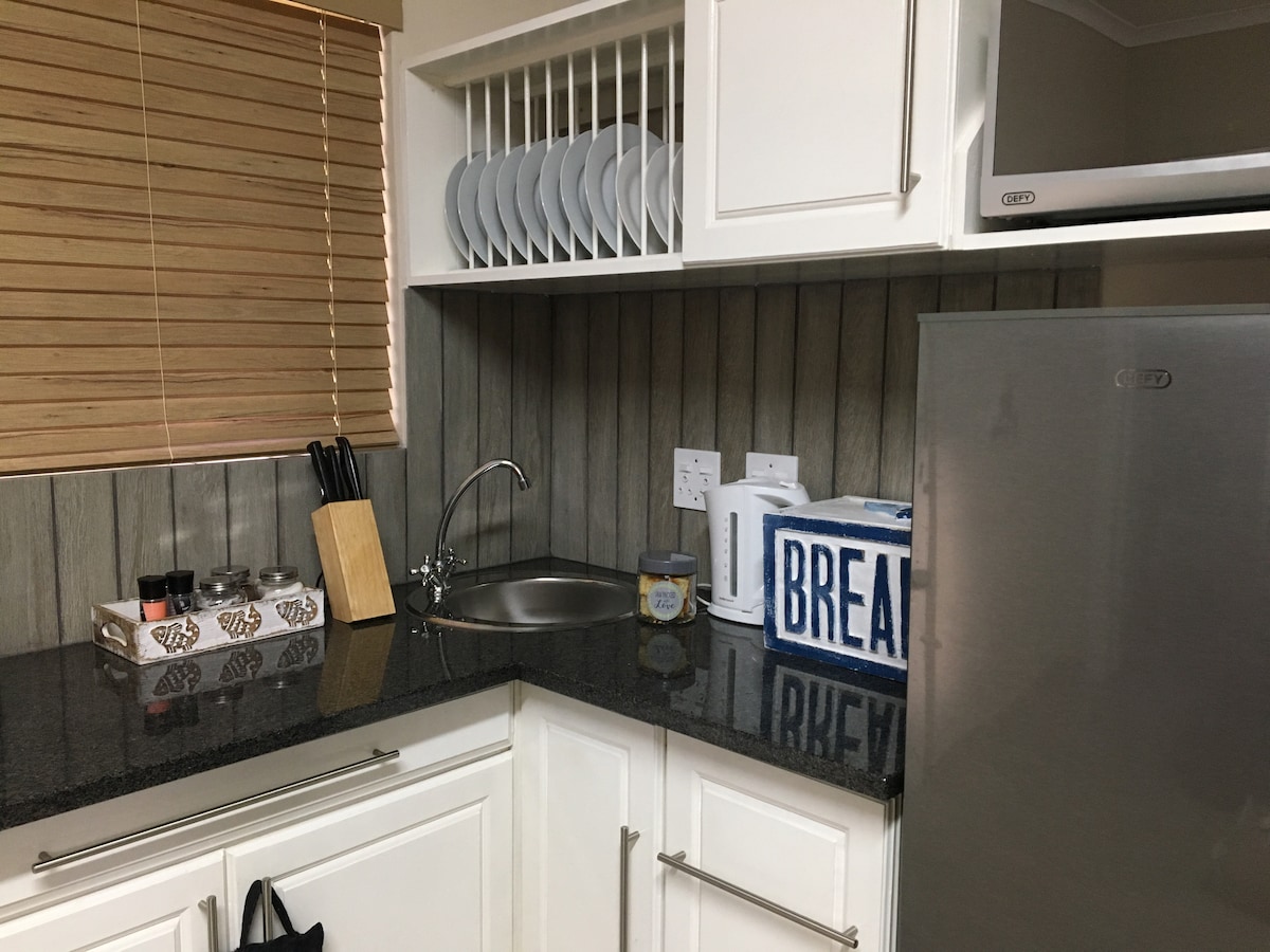 Kétszintes duplex. Az alsó szinten nyitott terű nappali és konyha található, amely a braai területre, a kompakt füves kertre és a saját autóbeállóra vezet. A legfelső emeleten 2 hálószoba található beépített szekrényekkel. Tökéletes a hosszabb foglalásokhoz.