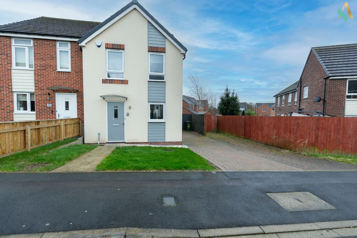 Kick back and relax in this luxury open planned detached house with modern features and simple deco that sleeps up to 6 in a quiet residential area of Stockton-on-Tees. Perfect place for work and leisure stays. The home away from home boasts a cosy lounge with Smart TV, fast WiFi, large open planned kitchen, dining and sunroom space which opens out to a private outdoor patio and garden. Ideal for stress free self-catering stays.