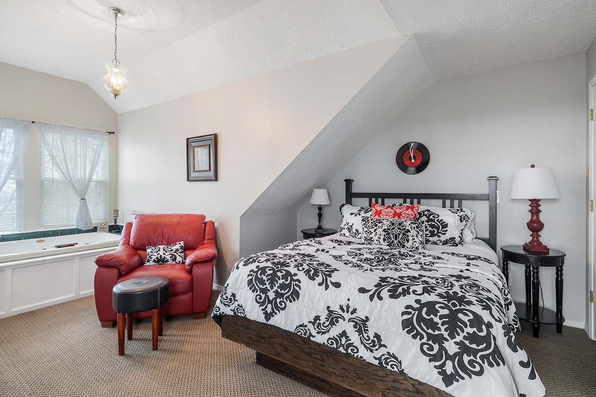 Üdvözlünk a Rustic Hideaway vendégházban a Bradfordban! Ez a tágas és hívogató vendégház mindenki számára kínál szállást, 2 queen méretű ággyal, egy king méretű ággyal és egy kétszemélyes emeletes ággyal, amely tökéletes a pihenéshez egy kellemes bransoni nap után. Élvezd a lenyűgöző kilátást Bransonra és a festői Ozark-hegységre az ingatlanból. Ez az egység kényelmesen megközelíthető, és egy lépcsőfok vezet a verandára és az épületbe. A Bradford Boutique szálloda része.
