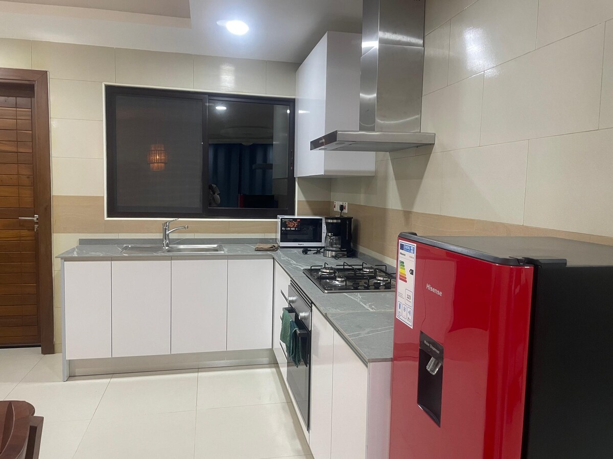 Experience serenity in this 3bed apartment in Fumba Uptown. Located on the 5th floor with lift access, it features 1 en-suite room, 2 standard rooms, and an open-plan kitchen, dining, and living area. Enjoy stunning ocean view and cool sea breezes from the private balcony — perfect for coffee, tea or sunbath as you watch the sunset. A peaceful escape with everything you need for a relaxing stay. 24km/ 31mins from Abeid Amani Karume International Airport, Stone Town, Zanzibar Ferry