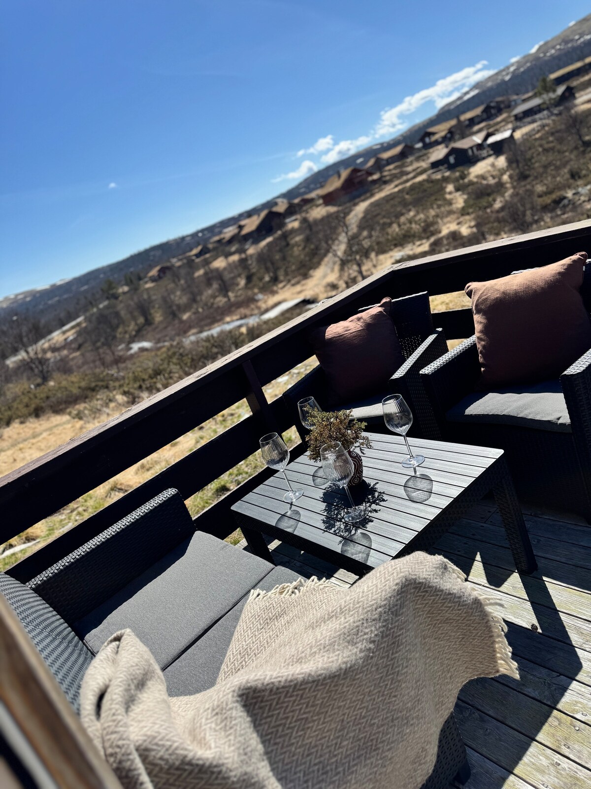 Nagy Hafjell apartman, síelésre készen, napfény, kilátás