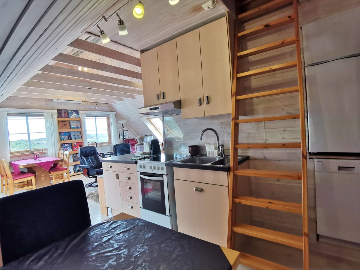 Felső emeleti lakás. Külön bejárat. Szép kilátás.