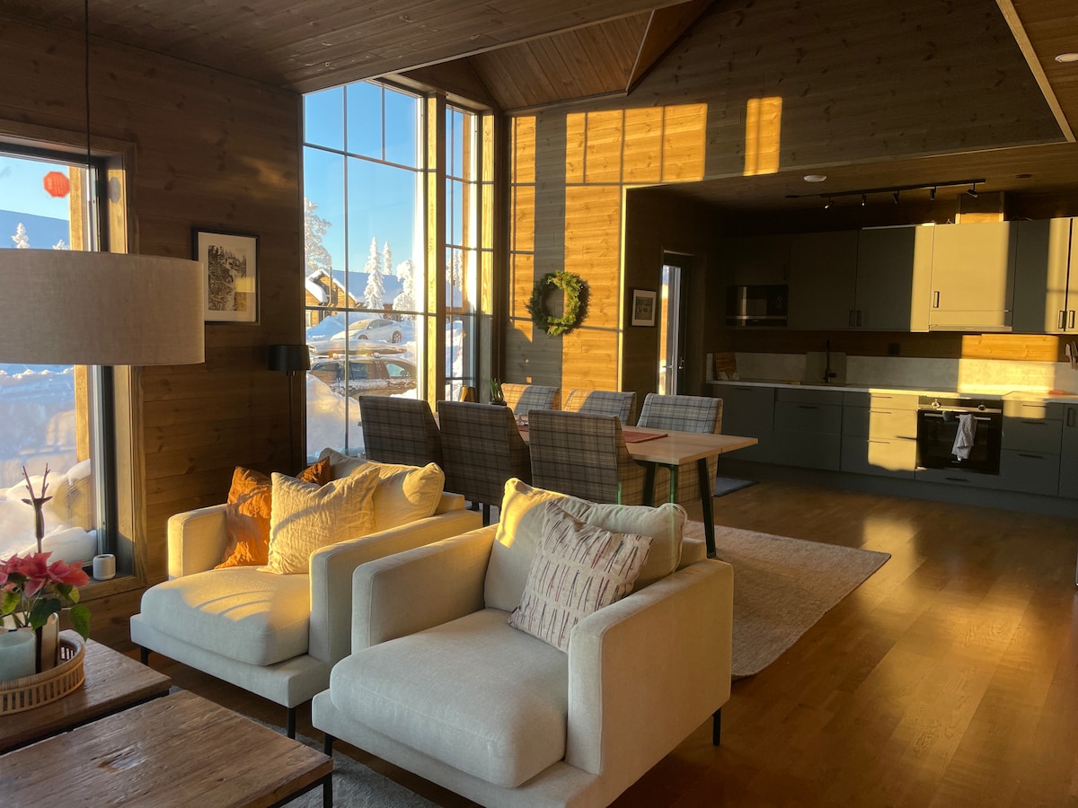 Varázslatos szálláshely csendes helyen, túraútvonalak közelében, csúszós távolságra a síeléshez mind a lejtőkön, mind az ösvényeken. Egy hegyi nap után bejöhetsz szaunába, összebújhatsz a kanapén a kandalló mellett, vagy vacsorázhatsz a nagy étkezőasztal körül a hegyi környezetet keretező üvegfalak előtt, mint egy nagy deszka. A szálláshely a Storhogna M közelében található, ahol étterem, síbérlés, önkiszolgáló élelmiszerbolt és bowling található. 2 km-re található a magas hegyi szálloda gyógyfürdővel és további éttermekkel.