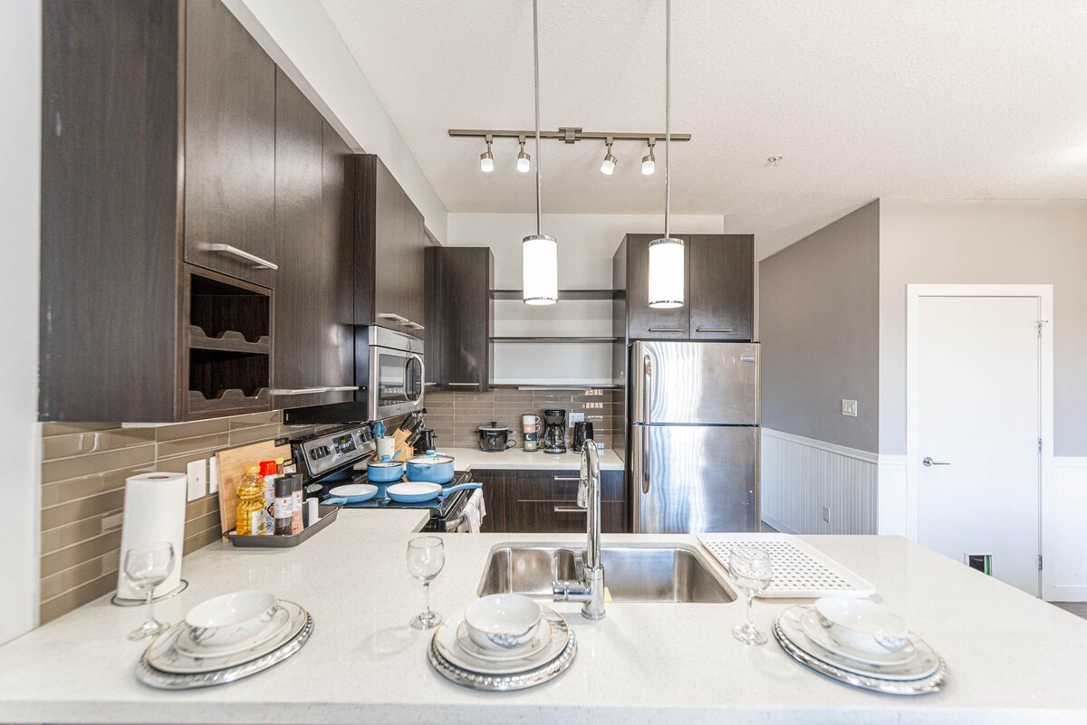 Tapasztald meg a belvárosi életet páratlan kilátással! ✔ 5 perc sétára a Rogers Place-től ✔ Biztonságos mélygarázs ✔ Teljesen felszerelt konyha ✔ King méretű ágy az extra kényelemért ✔ 1 teljes fürdőszoba ✔ 60hüvelykes Smart TV ✔ Gyors Wi-Fi ✔ Helyszíni edzőterem ✔ Helyszíni mosoda ✔ Munkaasztal ✔ Kávézó ✔ Közel a legjobb éttermekhez és éjszakai élethez ✔ Kültéri ülősarok grillezővel ✔ Lounge/Event Room Available in the Building ✔ Rengeteg természetes világítás ✔ Ingyenes kávé ✔ Ingyenes samponok ✔ Sötétítők minden ablakon