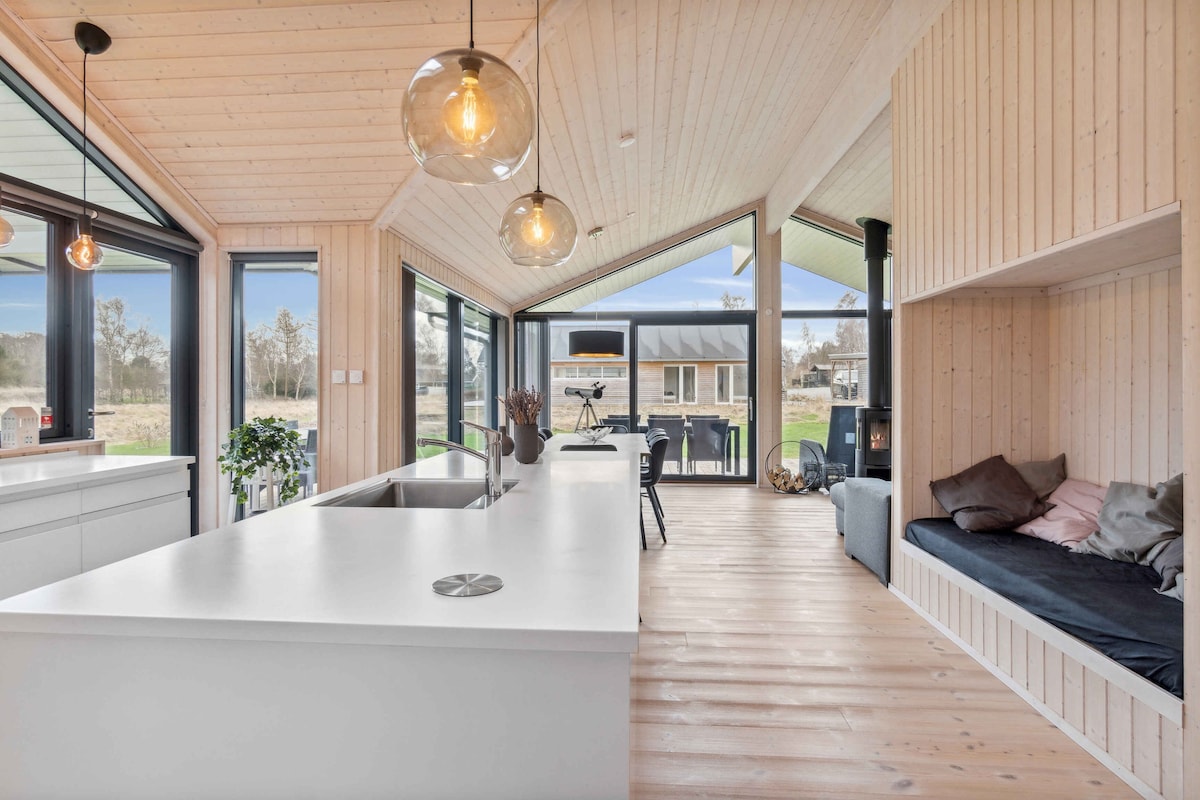 Experience modern minimalism in this Japanese-inspired tiny house with a front-row seat to Ørnehøj langdysse. The open space unites bedroom, kitchen, and dining area with large windows and a sliding door for privacy. Enjoy direct nature views and tranquil surroundings, perfect for relaxation or outdoor activities. Just an hour from Copenhagen, explore hiking trails, sea swims, Goose Tower, Møn, Stevns, and Forest Tower. Large double bed, ideal for two travelers, possibly with a baby.