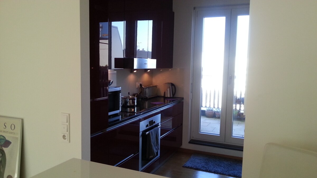 3 szobás lakás a Stuttgart Pariser Platz vasútállomáson. 2012-ben épült. Fényárban úszó penthouse lakás, 110 négyzetméteres, folyamatos teraszok padlótól a mennyezetig érő teraszajtókkal a lakás mindkét oldalán hangszigetelő ablakok. Nagy nappali, amely a konyhára és az étkezőre nyílik. 1 hálószoba, 1 dolgozószoba kanapéval, WC-vel, fürdőszobával. Parketta, padlófűtés. Wi-Fi, TV Magenta (felvételi lehetőség). A nappaliban található kanapé kétszemélyes ágyként használható a jobb oldali elem kihajtásával és az együléses elem behelyezésével.