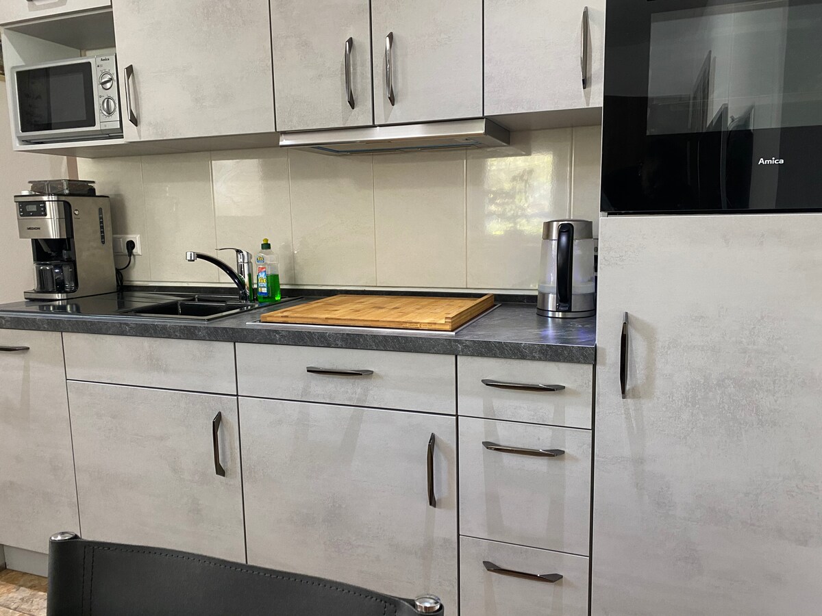 Üdvözöljük stílusos és teljesen berendezett, két hálószobás lakásában Leonbergben – tökéletes kiruccanás üzleti utazók, városi utazók vagy ideiglenes vendégek számára! Ez a fényben úszó lakás nemcsak magas szintű kényelmet kínál, hanem abszolút magánszférát is a külön, saját bejáratnak és az ajtó előtti autóbeállónak köszönhetően. Mindössze 5 perc sétára Leonberg bájos óvárosától. A szomszédos Ditzingen és Gerlingen városok autóval mindössze 5 perc alatt elérhetők.