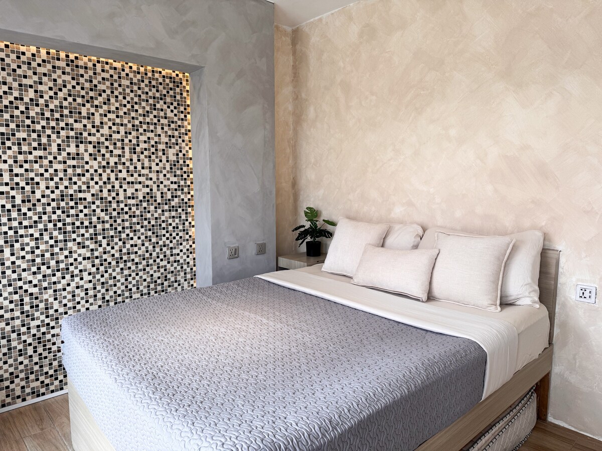 Élvezd a pihentető szállást ebben a nagy, tágas és stílusos, 1 hálószobás lakásban a Kandi Palace-ban (8. emelet). Komplett konyhai eszközök Frissített Big 2 TV Hűtőszekrény Mikrohullámú sütő Nagy kanapé Irodai asztal és szék Étkezőasztal és székek Erkélyasztal és székek Kábel, stream tv Gyors WI-FI Fehér és kék fények Zuhanyfűtő Vízmelegítő Teljesen berendezett Ingyenes parkolási lehetőség Hozzáférés a tetőteraszhoz: Úszómedence Étterem Közelebb az eseményekhez, mégis csendes, tökéletes a pihenéshez 🌸
