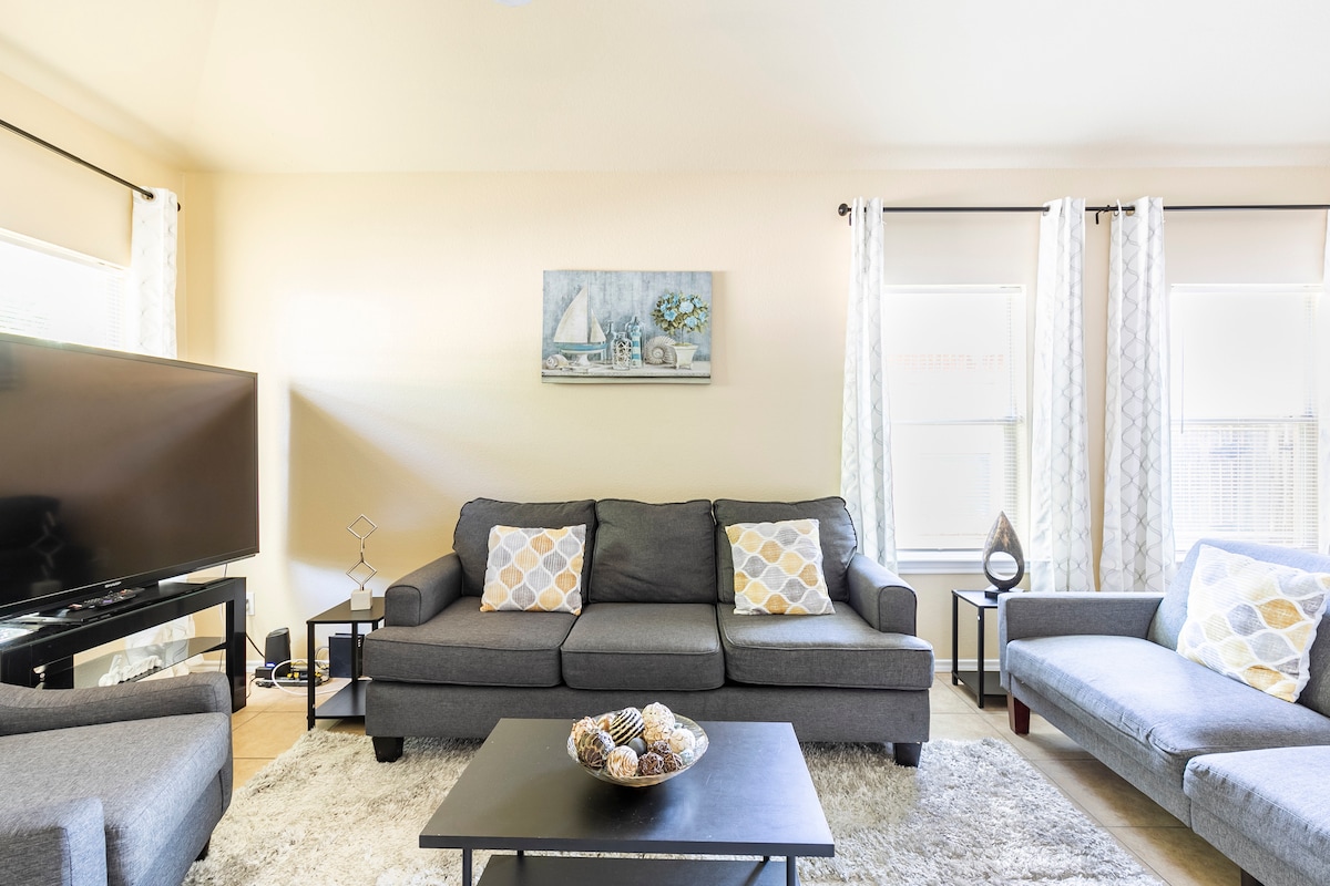 Üdvözlünk az otthonodban, távol az otthonodtól Arlingtonban! Ez a tiszta, hangulatos és kényelmes szálláshely percekre található az AT&T Stadiontól, a Globe Life Fieldtől, a Six Flags vidámparktól, a Hurricane Harbortól, az UT Arlingtontól és a DFW repülőtértől. Pihenj a hangulatos hálószobákban, élvezd a filmesteket, főzz a teljesen felszerelt konyhában, és maradj kapcsolatban a világgal a gyors Wi-Fi-vel. Családbarát, meccsnapra felkészült, és tökéletes üzleti utazók számára. Kevesebb vezetés, több móka – foglalj most, és szerezz felejthetetlen emlékeket Arlingtonban! 🌟