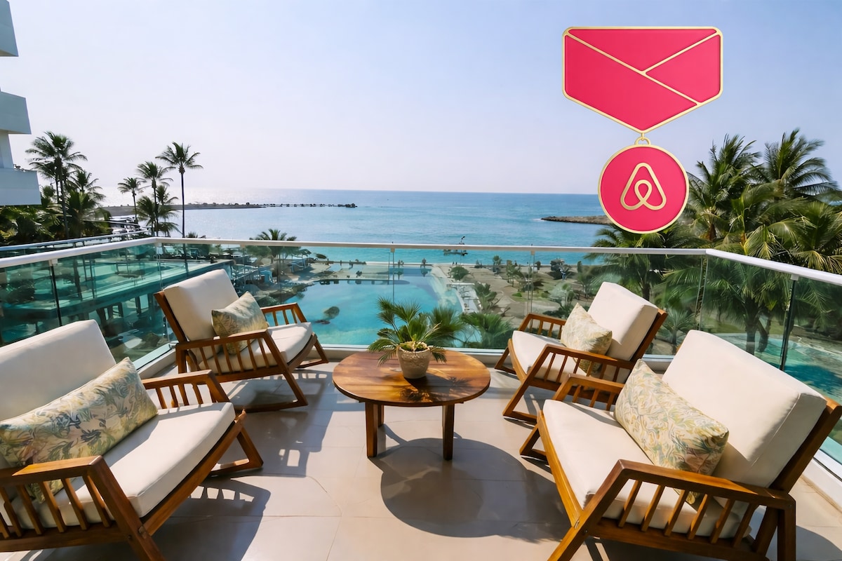 Látványos, óceánparti lakosztály az első emeleten, saját stranddal, úszómedencével és 24 órás ügyintézővel, amely kényelmet és nyugalmat kínál; pároknak, családoknak, barátoknak vagy olyan utazóknak tervezték, akik hangulatos légkört, álomszerű naplementét, szellőt és a kolumbiai karibi tengerpart nyugalmát keresik. – Queen méretű ágy + sommier pótágy - Sofacama - Okostévé - Wi-Fi - Konyha Fürdőszoba - Légkondicionálás - Kültéri terasz - Fuvarozó - Strandernyő típusú kioszk
