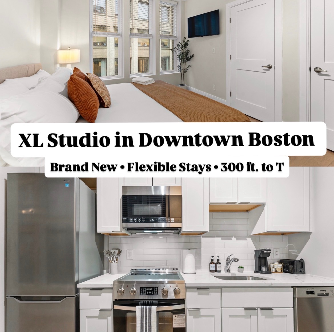✨BRAND NEW✨ 1 King-Bed Luxury Studio with private upgraded bathroom & fully-stocked kitchen, located right at Boston Commons and Downtown! NO SHARING OF RESTROOMS OR KITCHEN! 📍 Centrally located to be able to walk anywhere needed and 200-400 ft. to multiple T stops 🚊. Perfect for traveling professionals, mid-term stays and more! ALL UTILITIES INCLUDED. 482 sq. feet. 7th floor. Elevator access, no stairs. Need more space, different dates, or multiple rooms? Inquiry for more!