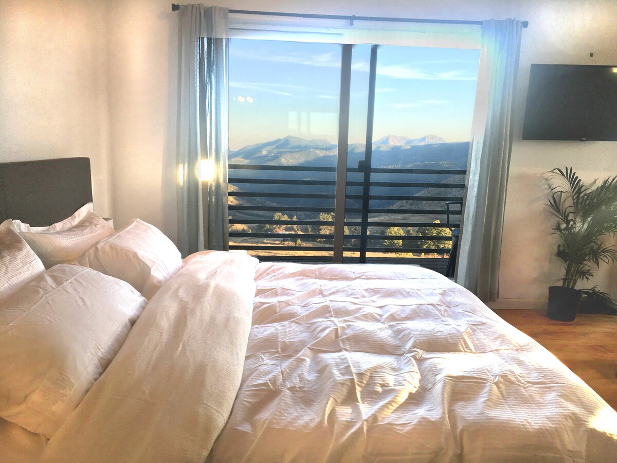 Élvezd az elsöprő 270 fokos kilátást, miközben stílusosan pihensz egy felejthetetlen hegyi kiruccanáshoz. 12 perc Uberrel Boulder belvárosába / Pearl streetre vagy nagyszerű helyi túrákhoz. Tapasztald meg a gyönyörű naplementéket vagy jógát a teraszon, és csillogj a stílusos, századközepi modern dekoráció közepette. Sétálj egyet a Sziklás-hegységre, a Flatironsra és Denver belvárosára nyíló kilátással. Dolgozz távolról a Starlink szupergyors internettel, ahonnan minden szobából kilátás nyílik. Maximum 2 vendég a nyugalom érdekében. Queen méretű ágy. Nincsenek háziállatok/gyerekek, nincsenek kivételek