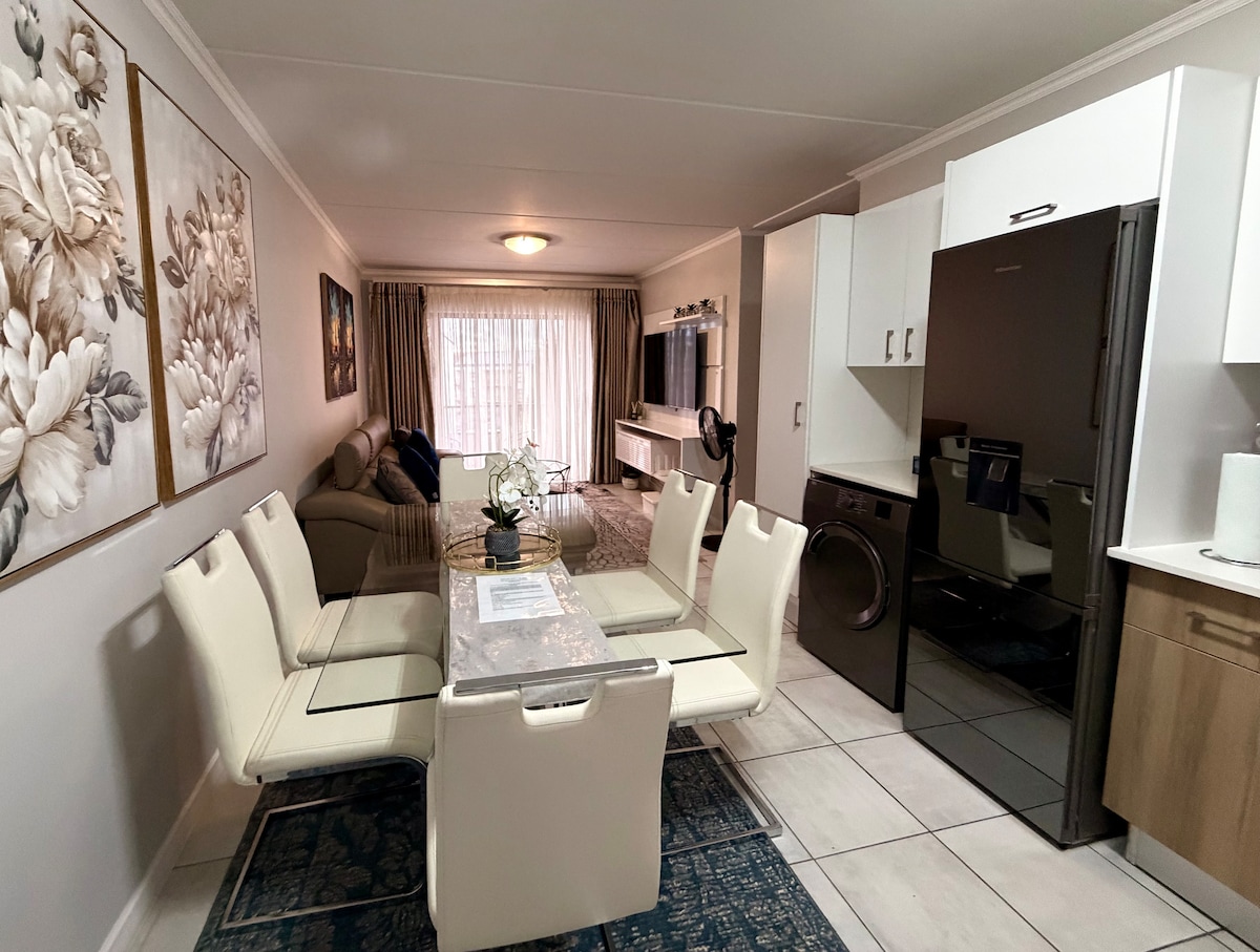 Nyugodj meg ezen az egyedi és nyugodt kiruccanáson. Kiváló helyen található Southgate-ben, Joburgtól délre. Az ingatlan 2 hálószobát, 1 franciaágyat, 1 kétszemélyes ágyat és 1 kanapéágyat kínál. Teljesen felszerelt, önellátó szállás saját konyhával és főzési lehetőséggel. Ideális családoknak, üzleti utakhoz vagy pároknak. Kényelmes helyen, 5 percre a Southgate Mall bevásárlóközponttól, 10 percre a Goldreef bevásárlóközponttól és 12 percre az FNB Stadiontól, könnyű hozzáféréssel a nagyváros főbb részeihez vezető főutakhoz.