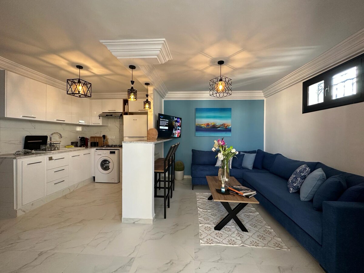 À Sidi Bou Saïd, dans un havre de silence et de lumière, ce grand lumineux S1 mêle tradition arabo-andalouse et confort moderne. Cheminée, terrasse fleurie, arches, zelliges et mobilier artisanal créent une ambiance unique. Cuisine équipée, Wi‑Fi haut débit,TV avec toutes les chaînes ,films et séries, literie soignée. En 15 min à pied : ruelles bleues, cafés, mer et saveurs locales. Idéal pour créer, se ressourcer, s’évader ou simplement respirer.