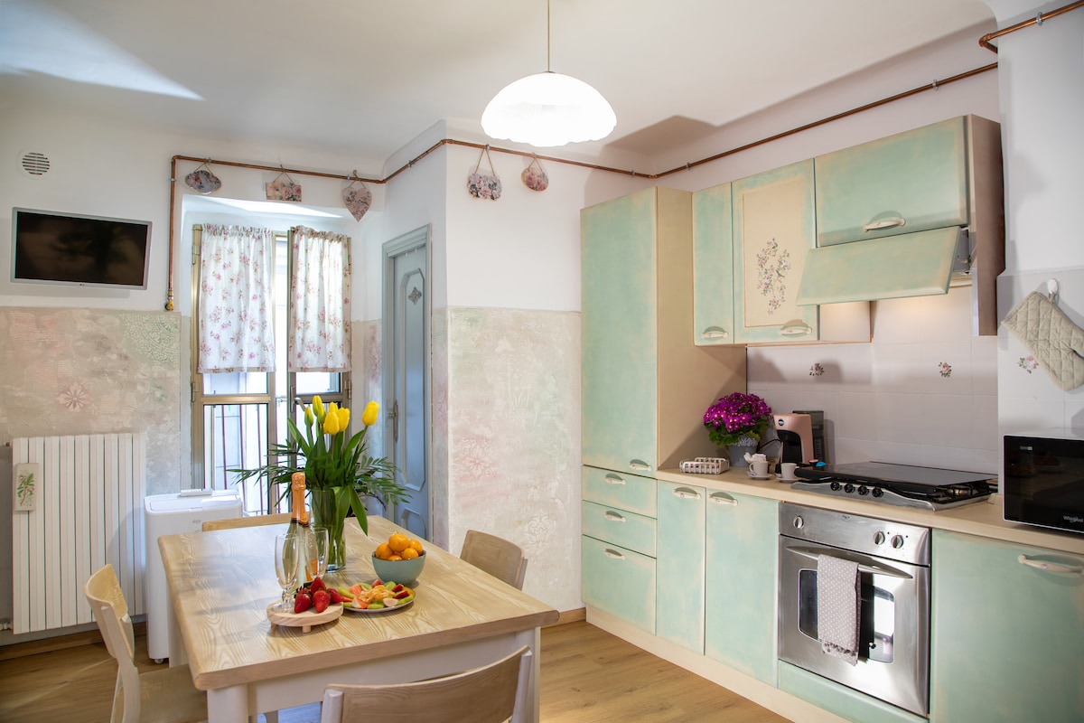 Vico 50 is a cozy open-space apartment in Sulmona’s historic center, featuring a fully equipped kitchen, a double bedroom and a mezzanine with an additional double bed. A reading corner with books in Italian and English is ideal for relaxing or working remotely. The mountain-view terrace is perfect for breakfast or a romantic break. Located on the second floor of a historic home, reached via a steep staircase. Laundry room and self check-in available.