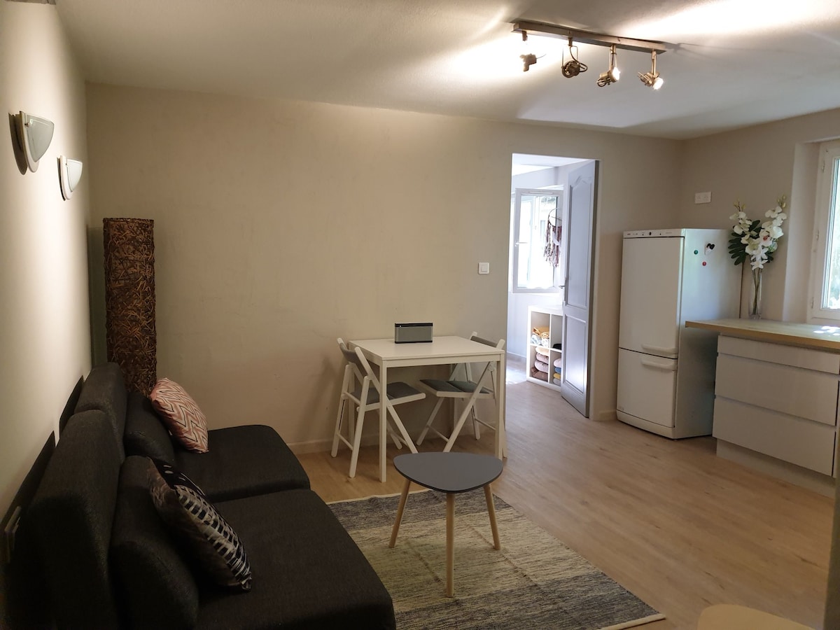 Üdvözlünk Aubais-ban, a Gardban. Házikónk a bájos falu központjában található, Sommieres, Vergeze és Lunel közelében, a Camargue kapuinál, kevesebb mint egy órányira a Gard és Uzes hídtól Nîmes és Montpellier között, az A 9-es autópálya közelében. 5 személy elszállásolására alkalmas. Egy kőfaluház hátsó udvarában található a Gardban, ahol élünk. Gyönyörűen felszerelt, elbűvölő, kényelmes, nyugodt és nyugodt hely a találkozóhelyen.