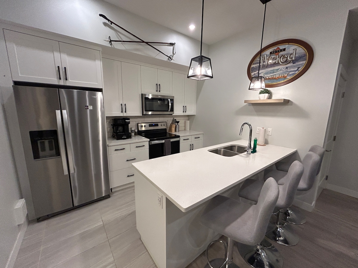 Pihentető szállás pároknak, egyedül utazóknak vagy üzleti utazóknak. Földszinten, saját bejárat, önálló bejutás. Ingyenes parkolás. King méretű ágy, saját mosoda, gyors WIFI. Teljesen felszerelt konyha – kávé, könnyű reggeli is van benne. Olvadj bele a hordószaunába, majd pihenj egy félreeső, egész évben védett teraszon tűzrakó asztallal, hangulatos ülőhellyel és grillezővel, mindezt egy csendes, elkerített hátsó udvarban. 5 percre az 1-es autópályától, 10 percre a belvárostól, 55 percre Sun Peaks-től. A tökéletes kiindulópont a következő kiruccanásodhoz.
