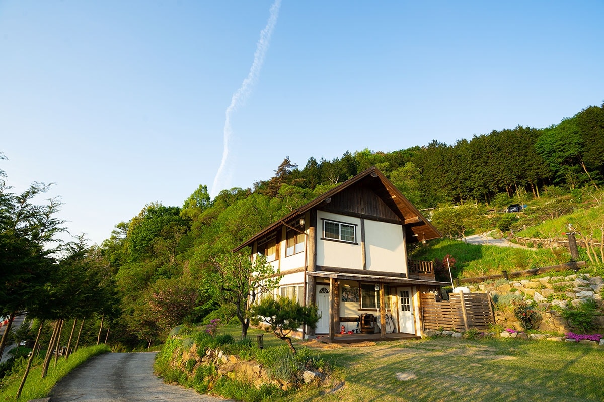 Szép kerttel rendelkező, fából épült, privát szállás Jangseong cédruserdőben (hangulatos ház az erdőben)
