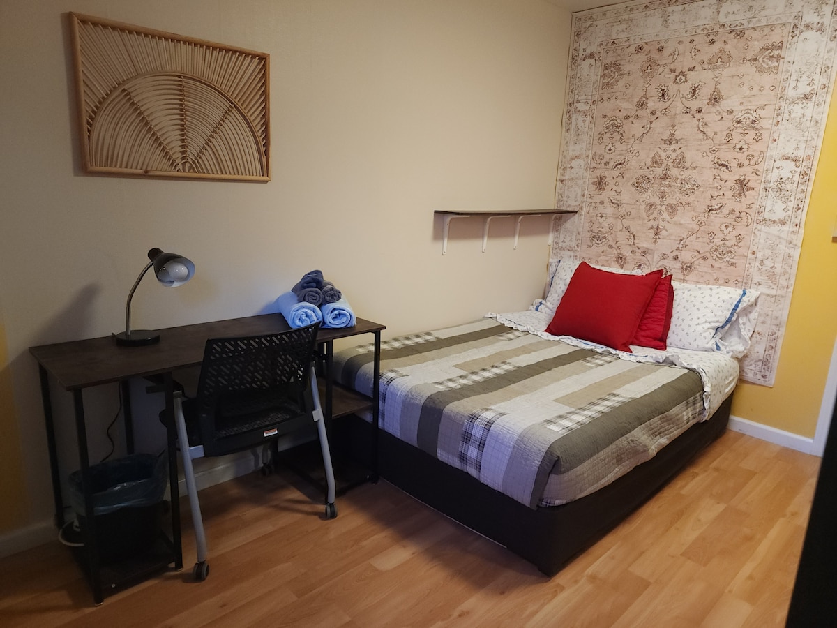 Központi elhelyezkedésű, modern vendégház Santa Clarában. Körülbelül 10 perc autóval az Apple Park, Nvidia HQ, Lawrence Caltrain Station, 49ers Levis stadion, Santa Clara Convention Center, Valley Fair Mall/Santana Row, SAP Center/Downtown SJ, SJ Mineta Airport. A lakosztályod saját nagy ínyenc konyhával, megtévesztő teljes fürdőszobával, queen méretű ággyal és tágas gardróbbal, Wi-Fi-vel, TV-vel, íróasztallal és hátsó udvarral, valamint kültéri ülősarokkal rendelkezik. A ház hátuljában közös mosógép és szárítógép is található.